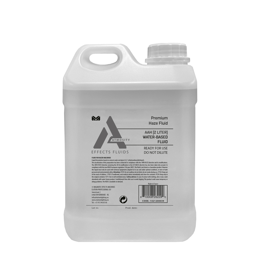 Atmosity Premium Haze Fluid - это жидкость для дымки на водной основе, предназначенная для создания синтетических атмосферных эффектов для использования с машинами Magmatic Hazer - серии Thermatic ™ или любыми другими машинами для дымки компрессорной системы, для которых требуется жидкость на водной основе. Atmosity Premium Haze Fluid - это дымчатая жидкость на водной основе, намного более сухая, чем версия на масляной основе. Таким образом, эта жидкость практически не оставляет следов. Бесцветный, без запаха и негорючий.