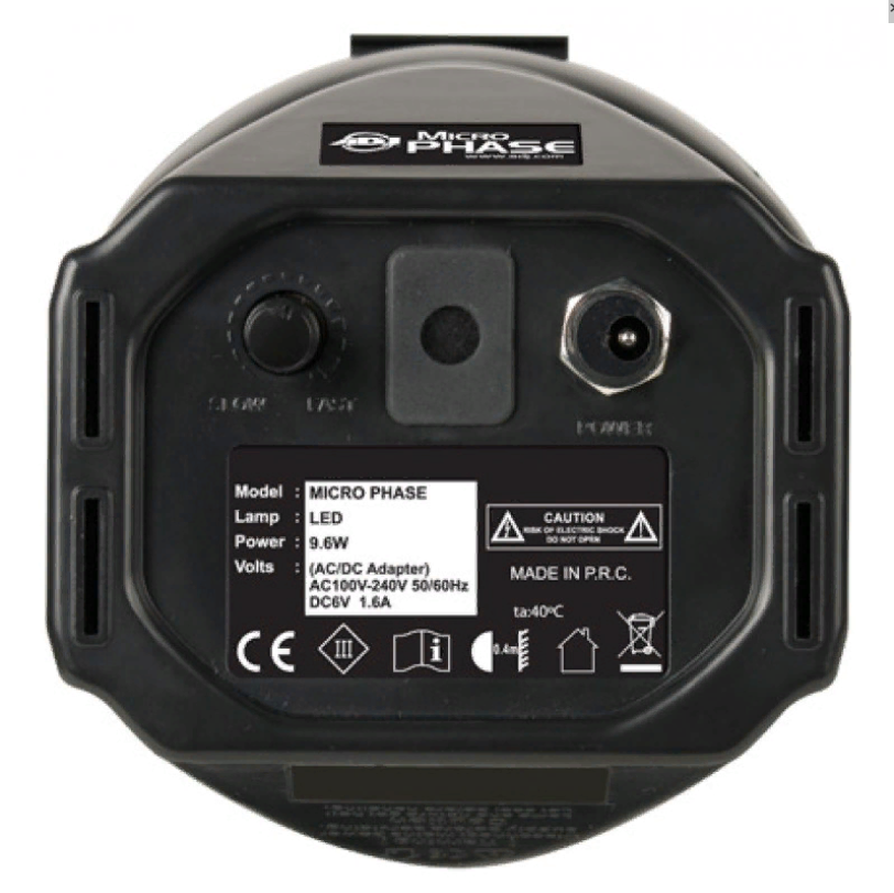 ADJ Micro Phase Прожектор с эффектом трилистника – 108 бритвенно острых многоцветных дихроичных лучей - Светодиод RGB 3-в-1 мощностью 3 Вт (сроком службы 20 000 ч) - Ручка FX: статичное положение или вращение по часовой стрелке или против часовой стрелки - Встроенный микрофон для звуковой активации - Угол луча: 65 - - Потребляемая мощность: макс. 9,6 Вт - Работа с разными напряжениями: 100-240 В пер. т, 50/60 Гц - Габариты (ДxШxВ): 213 x 165 x 134 мм - Масса: 0,7 кг.