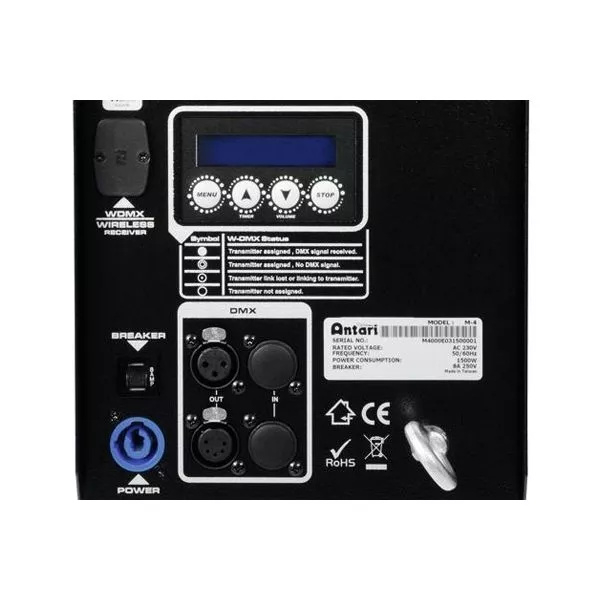 M-4- новая профессиональная дым машина, производящая мощный эффект дымового взрыва, предназначенная для турового использования. Прочная металлическая конструкция идеально подходит для транспортировки, при этом жидкость хранится в специальном резервуаре внутри машины. Встроенная система Wireless DMX позволяет обходиться без кабелей, облегчая подключение и использование генератора, используя автоматическую настройку частоту. Новая нагревательная система обеспечивает мощную кратковременную струю до 5 метров высотой. Специально разработанная жидкость на водяной основе FLC-5 позволяет производить сильный дымовой выброс до 20 сек. с мгновенным последующим рассеиванием. При этом генератор можно располагать под любым углом, не беспокоясь о проливе жидкости.