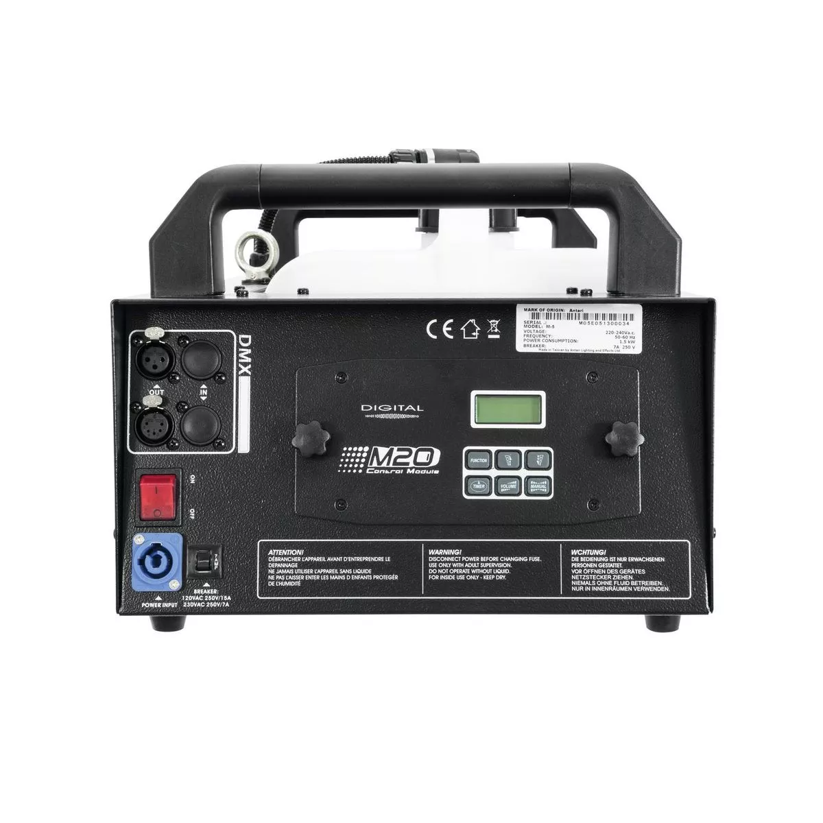 Время разогрева: 8 мин. Потребление жидкости: 1литр /7 мин при непрерывной работе Емкость бака:10 л Пульт в комплекте: M-20 (с таймером) Опции: пульт M-30 (беспроводной пульт управления) Дополнительные аксессуары: крепление для подвеса(M5-HB), транспортировочный кейс с системой Shock mount (FM-5). Вес: 15 кг Габариты: 668 х 319 х 170 мм