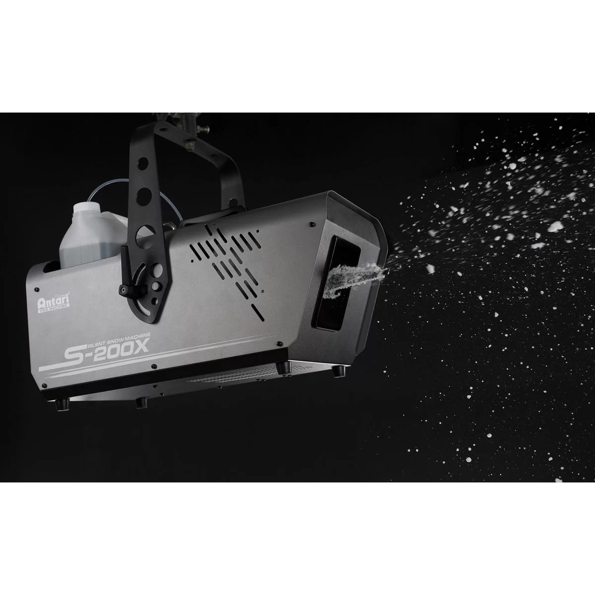Antari S-200X — это тихий («silent») генератор снега, предназначенный для создания удивительной зимней атмосферы на различных мероприятиях. Оборудован резервуаром объемом 5 литров, производительностью 200 мл в минуту, прибор производит большое количество искусственных снежинок, имитирующих настоящий снегопад.Antari S-200X — это тихий («silent») генератор снега, предназначенный для создания удивительной зимней атмосферы на различных мероприятиях. Оборудован резервуаром объемом 5 литров, производительностью 200 мл в минуту, прибор производит большое количество искусственных снежинок, имитирующих настоящий снегопад. Благодаря низкой шумности, устройство не нарушает акустический фон мероприятия, оставаясь незаметным для гостей.