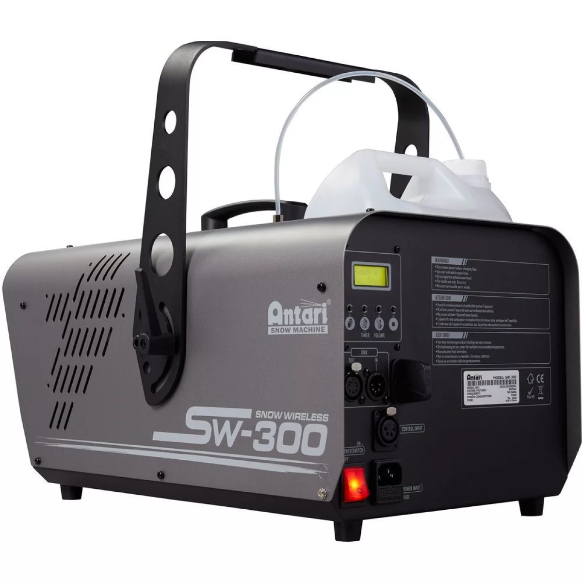 Antari SW-300 — мощный генератор снега с дальним выбросом, предназначенный для создания потрясающих визуальных эффектов на различных мероприятиях. Устройство способно производить до 250 миллилитров снега в минуту, обеспечивая впечатляющий объем снежинок. Бак для жидкости имеет вместимость 5 литров, что позволяет устройству работать длительное время без необходимости перезаправки.