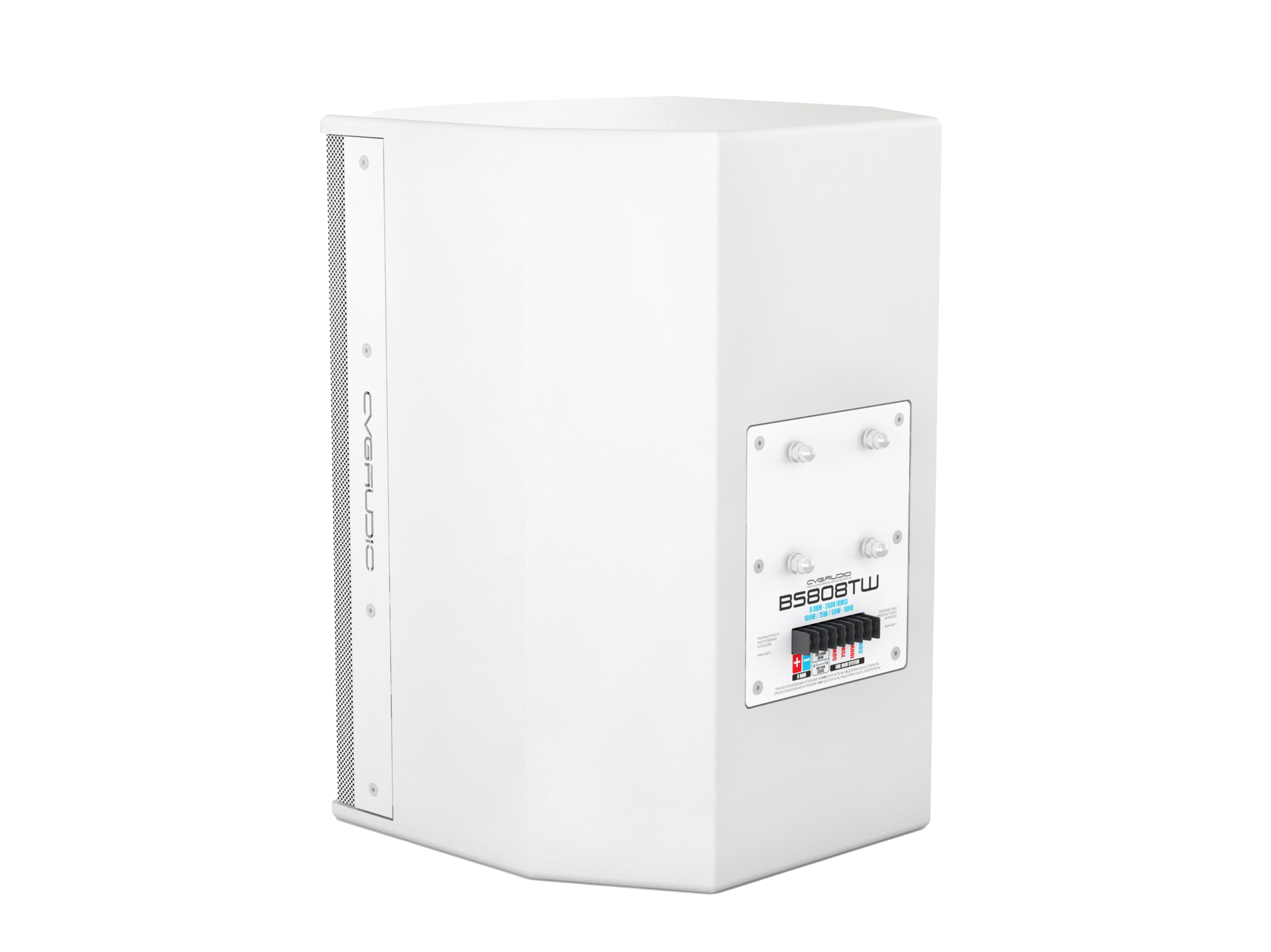 Мощная двухполосная корпусная акустическая система. Мощность в низкоомном режиме работы — 200W/RMS, 400W(max). Номинальный импеданс — 8ohm. Мощность в 100V режиме работы — 50W/75W/100W. Материал корпуса — МДФ, фазоинвертор. Покрытие – структурированный полиуретан (полимочевина), цвет белый. Габаритные размеры – 429mm x 300mm x 317mm, вес 13,2kg.