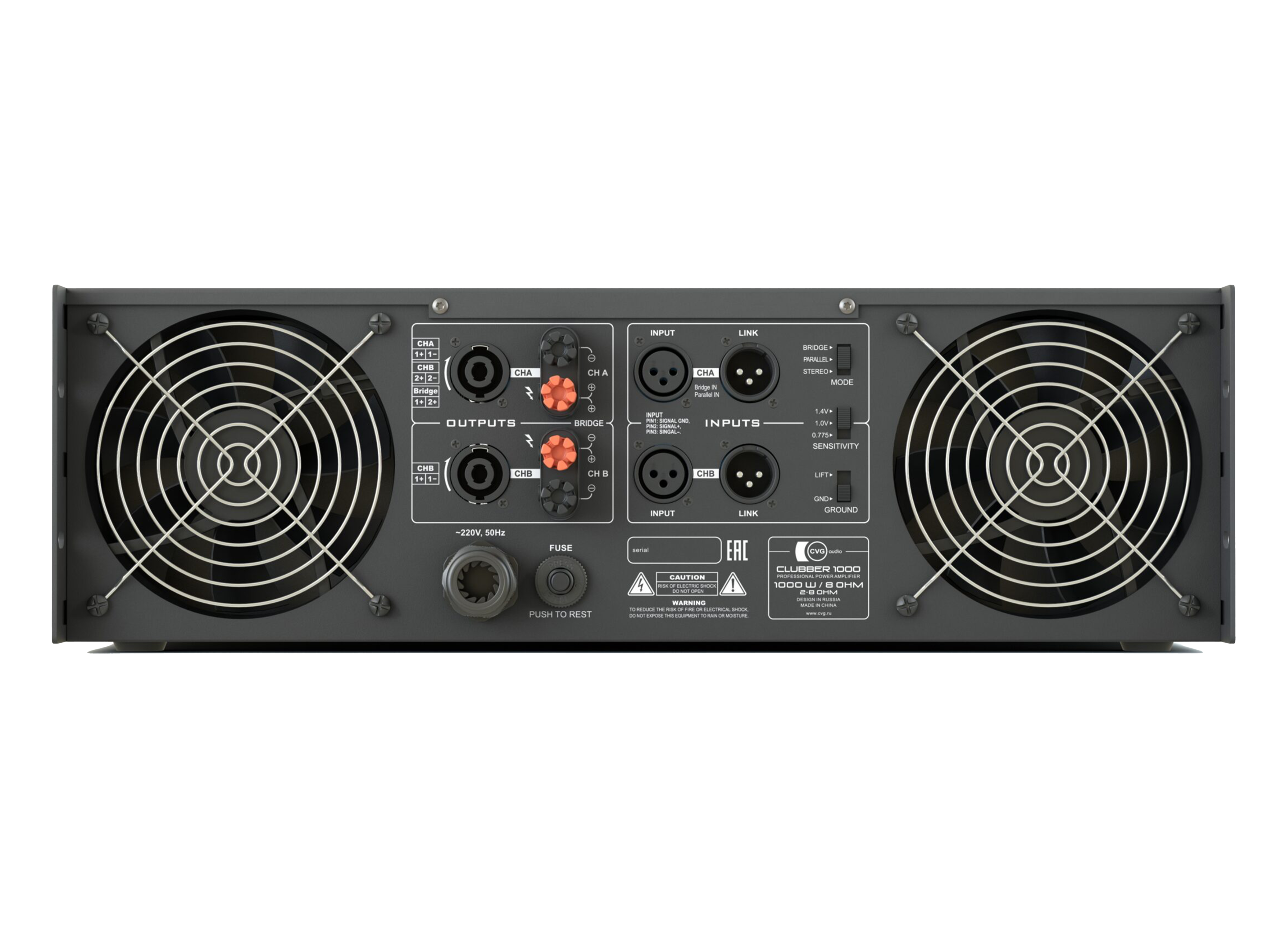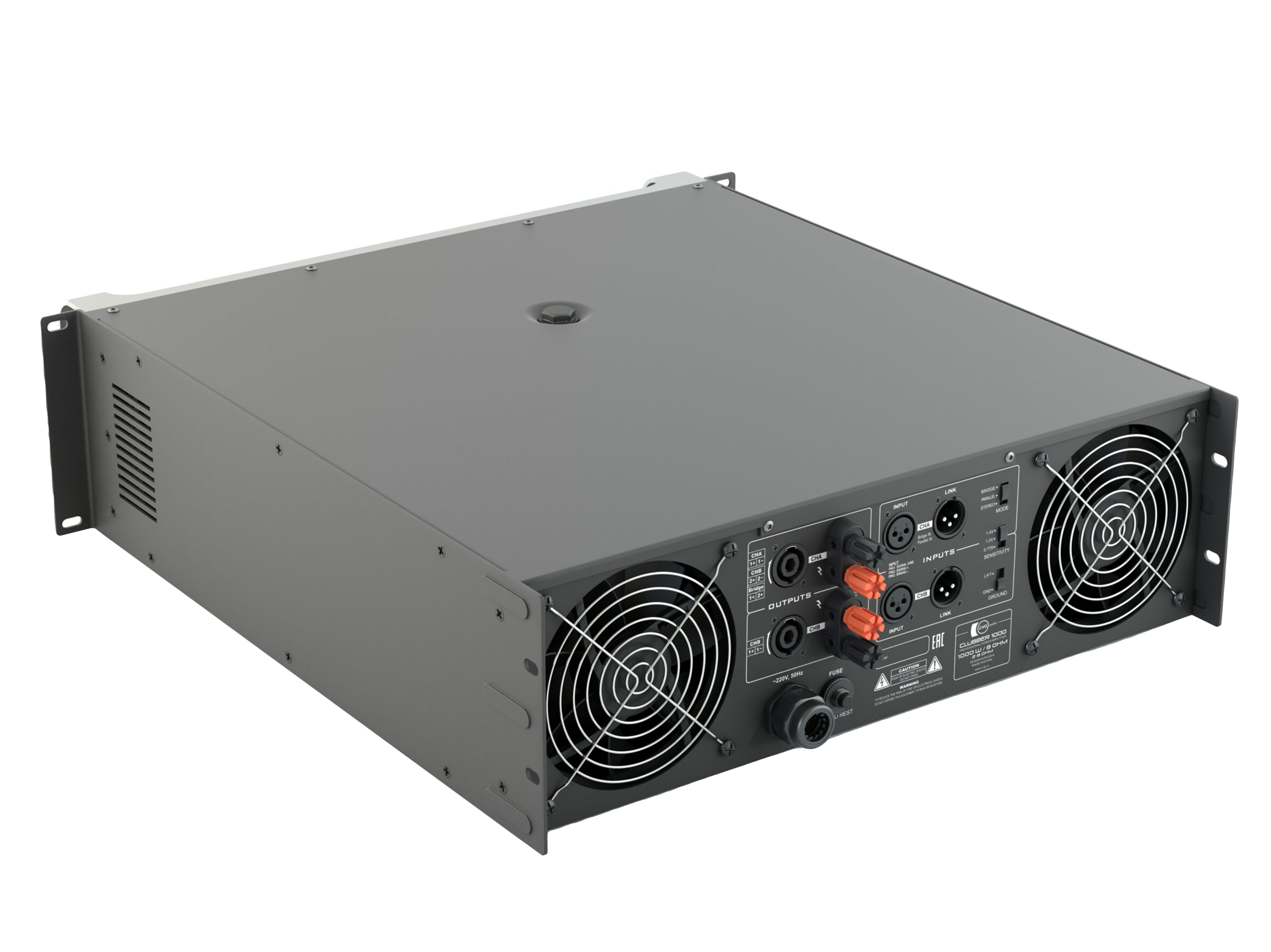 Профессиональный низкоомный двухканальный усилитель мощности, корректный диапазон нагрузки 4-8ohm на канал, 2 XLR балансных входа с управляемой чувствительность – селектор 1,4V, 1V, 0,775V, 2 XLR Link out, STEREO/PARALLEL: 4ohm — 1500W x 2 / 8ohm — 1000W x 2, BRIDGE: 8ohm — 2500W, спикерный выход на разъемах Speakon и винтовых зажимах, активное охлаждение, жидкокристаллический информационный дисплей на лицевой панели, металлический корпус 3U.