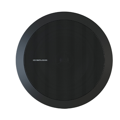 Двухполосная акустическая система для установки в подвесной потолок, Мощность 2,5/5/10/20W в 100V режиме. Круглая, цвет корпуса черный, ABS пластик, алюминиевая решетка. Вуфер – 6,5”(165mm), твитер 1”(25,4mm). Габаритный размер – 245mm х 94mm (за потолок – 90мм). Отверстие для установки — 200mm.