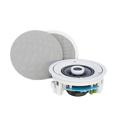 Двухполосная акустическая система home Hi-Fi класса для установки в подвесной потолок, мощность 20W RMS / 40W max – 8ohm. Круглая, цвет корпуса белый, ABS пластик, две металлических декоративных сетки в комплекте (для установки с рамкой и безрамочной). Вуфер – 4” (101,6mm) — материал полипропилен, купольный поворотный твитер 3/4”(19mm), материал — шелк, фильтр второго порядка. Габаритный размер – 156mm х 73mm (за потолок – 71мм). Отверстие для установки — 141mm.