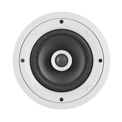 Двухполосная акустическая система home Hi-Fi класса для установки в подвесной потолок, мощность 40W RMS / 80W max – 8ohm. Круглая, цвет корпуса белый, ABS пластик, две металлических декоративных сетки в комплекте (для установки с рамкой и безрамочной). Вуфер – 6,5”(165mm) полипропилен, купольный поворотный твитер 1”(25,4mm) шелк, фильтр второго порядка. Габаритный размер – 213mm х 87mm (за потолок – 85мм). Отверстие для установки — 195mm.