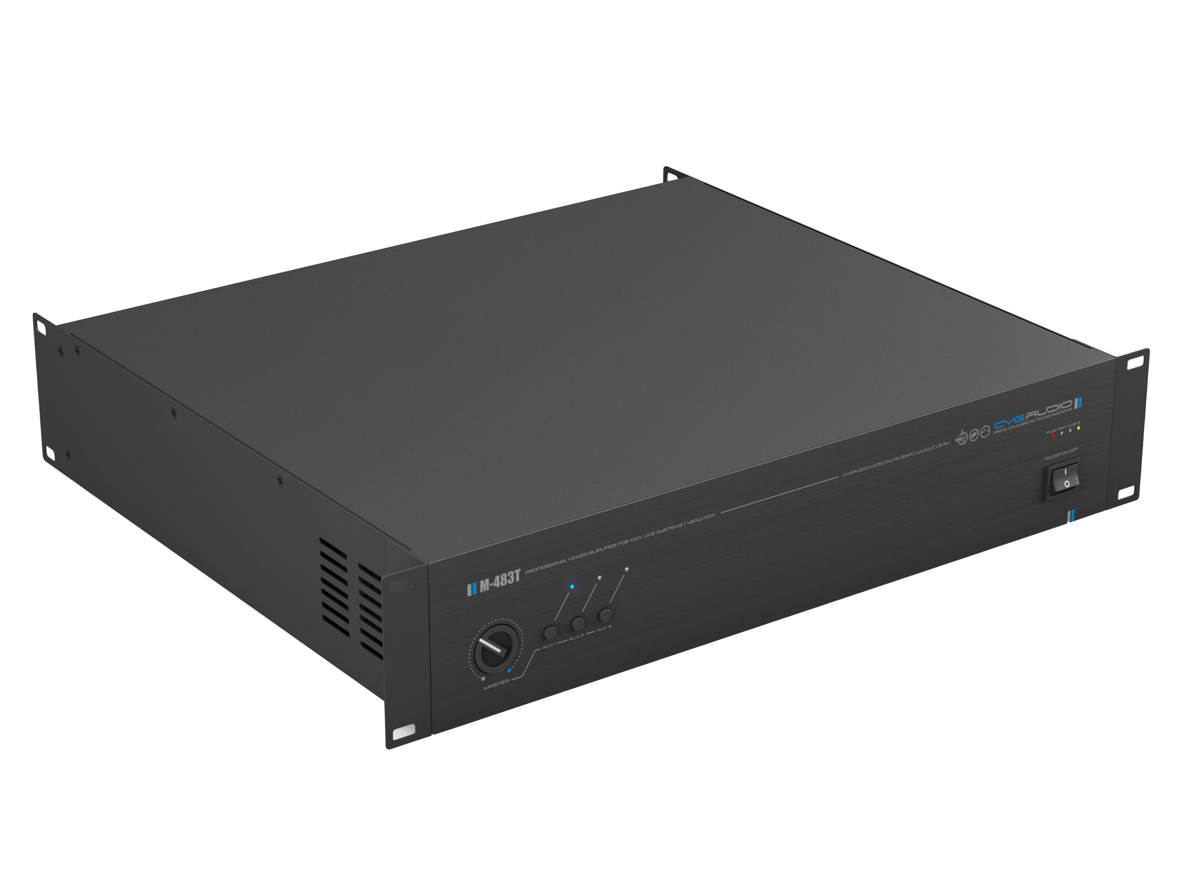 Профессиональный микшер-усилитель для качественных систем трансляции фоновой музыки и голосового оповещения, мощность 480W/100V, 3 line in (3x2RCA), 2 mic/line in (XLR/TRS), настраиваемый приоритет, фантомное питание 24V, управляющие контакты FULL MUTE, MUSIC MUTE, раздельный двухполосный EQ для линейных и микрофонных входов, индивидуальная настройка чувствительности для каждого линейного и микрофонного входа, сквозной выход THROUGH OUT (2RCA) c входа LINE1, линейный выход AUX LINK (RCA), управляемый выход OPERATED OUT (RCA), 2U корпус.