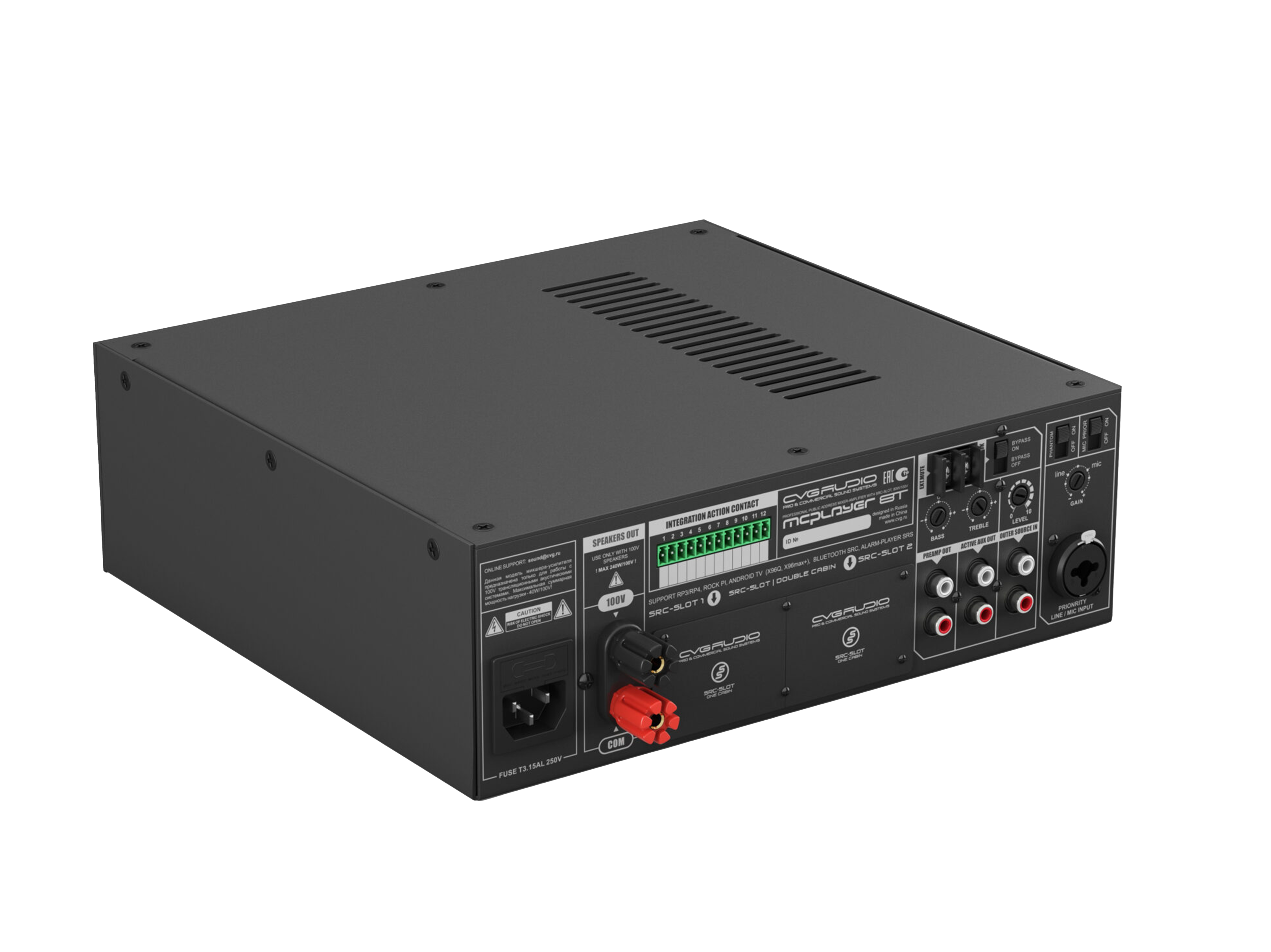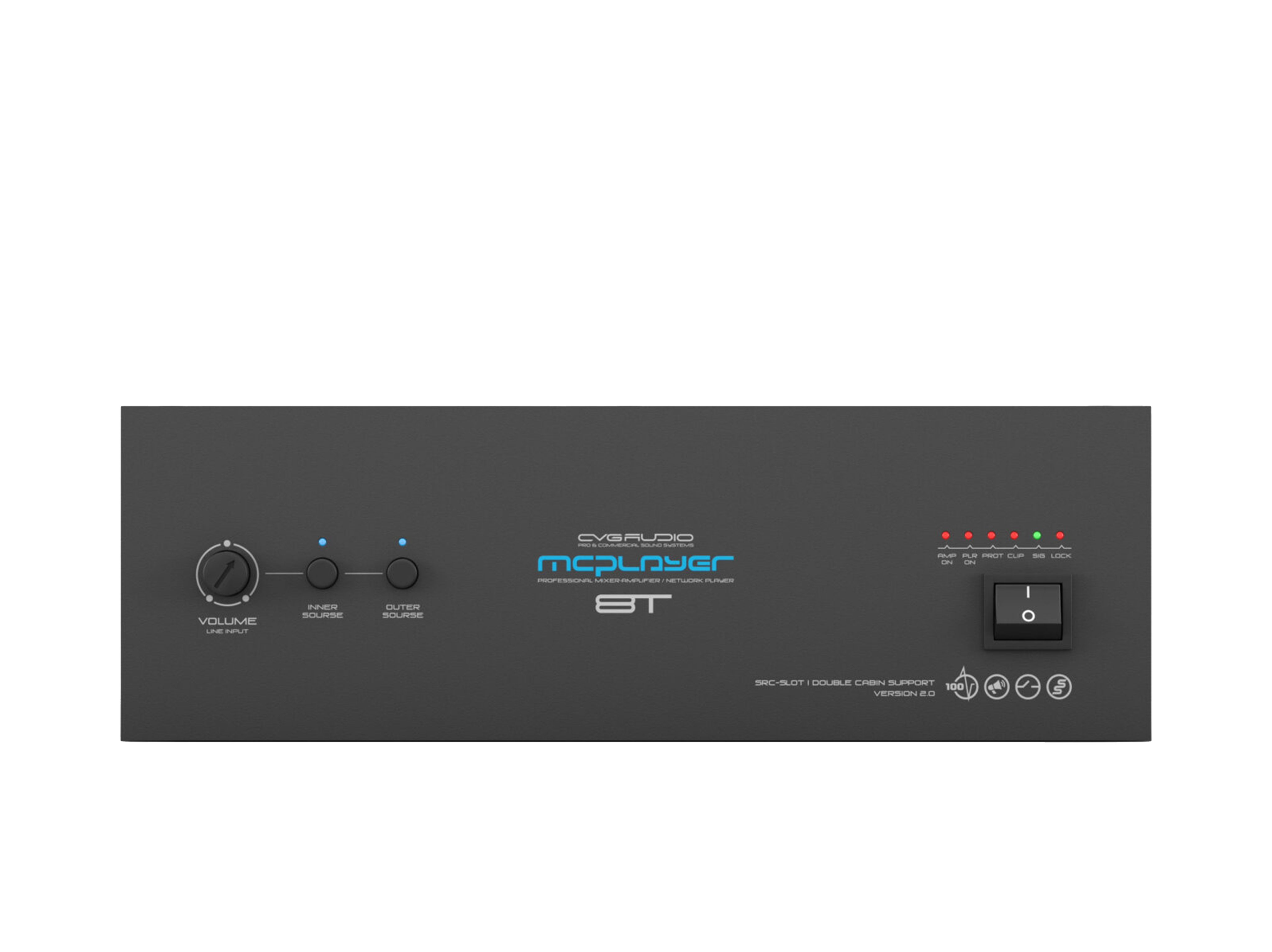 Профессиональный микшер-усилитель 80W/100V, два селективных LINE IN (INNER — встроенный плеер и OUTER — внешний источник). Интегрированный микрокомпьютер Raspberry Pi 3B для работы с профессиональными сетевыми сервисами, предоставляющими лицензированный контент. Универсальный LINE/MIC вход с управляемой чувствительностью, фантомным питанием и приоритетом над линейными входами. Управляющие контакты EXT.MUTE для интеграции с СОУЭ. Функция BYPASS LOCK для блокировки управления с лицевой панели усилителя. Корпус – 2U, кронштейны в стандартном комплекте поставки.