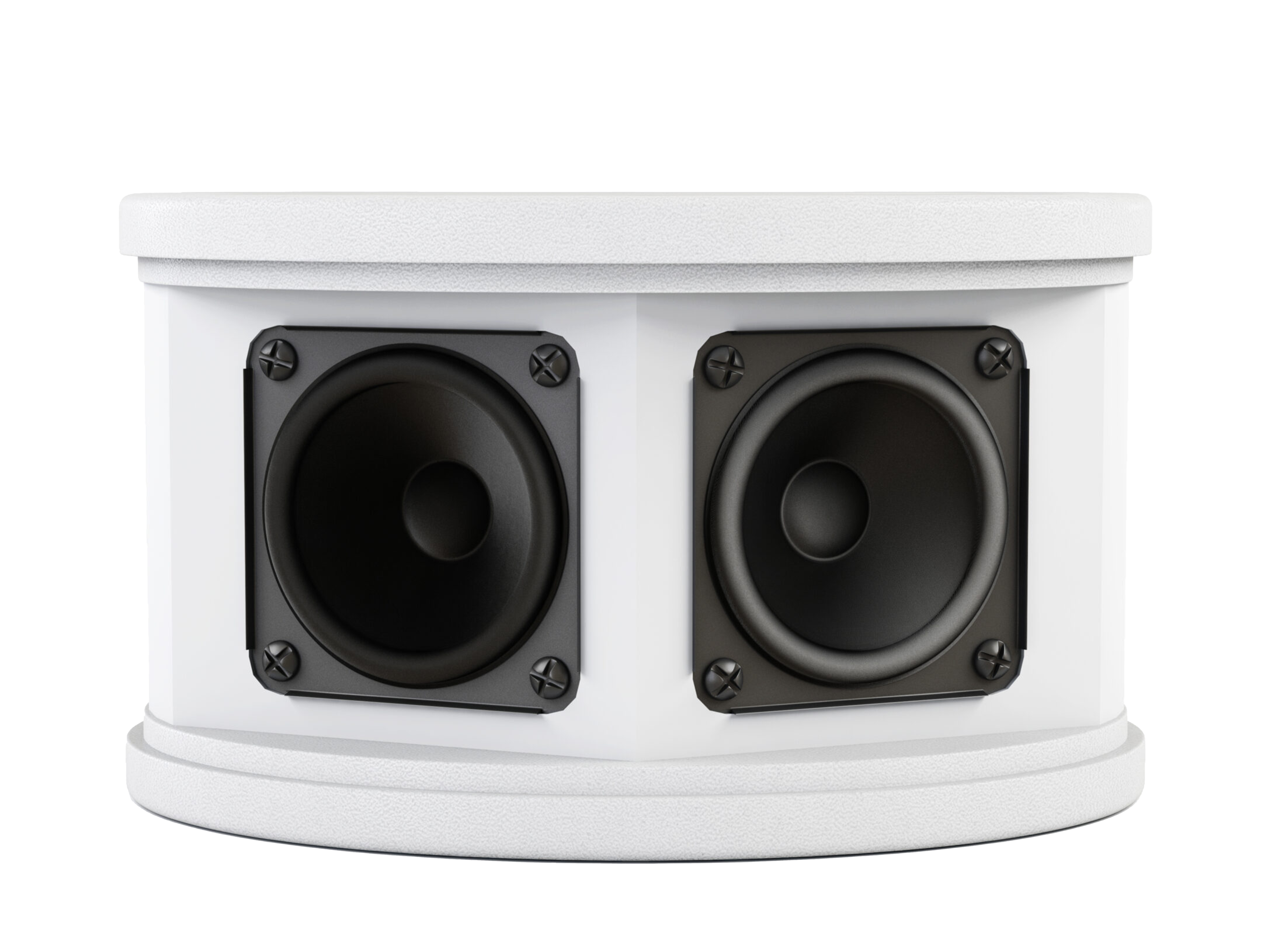 Высококачественная инсталляционная 2×2,5″ full-range акустическая система (сателлит), мощность — 40W(AES) / 80W(max), номинальный импеданс — 16ohm. За счет использования двух динамиков, установленных под углом 130 градусов – достигается диаграмма направленности в широком диапазоне частот с размахом — 140 градусов. Шарнирный кронштейн для настенной установки входит в стандартный комплект поставки. Материал корпуса – МДФ (МВ) высокой плотности, декоративная защитная сетка из нержавеющей стали.
