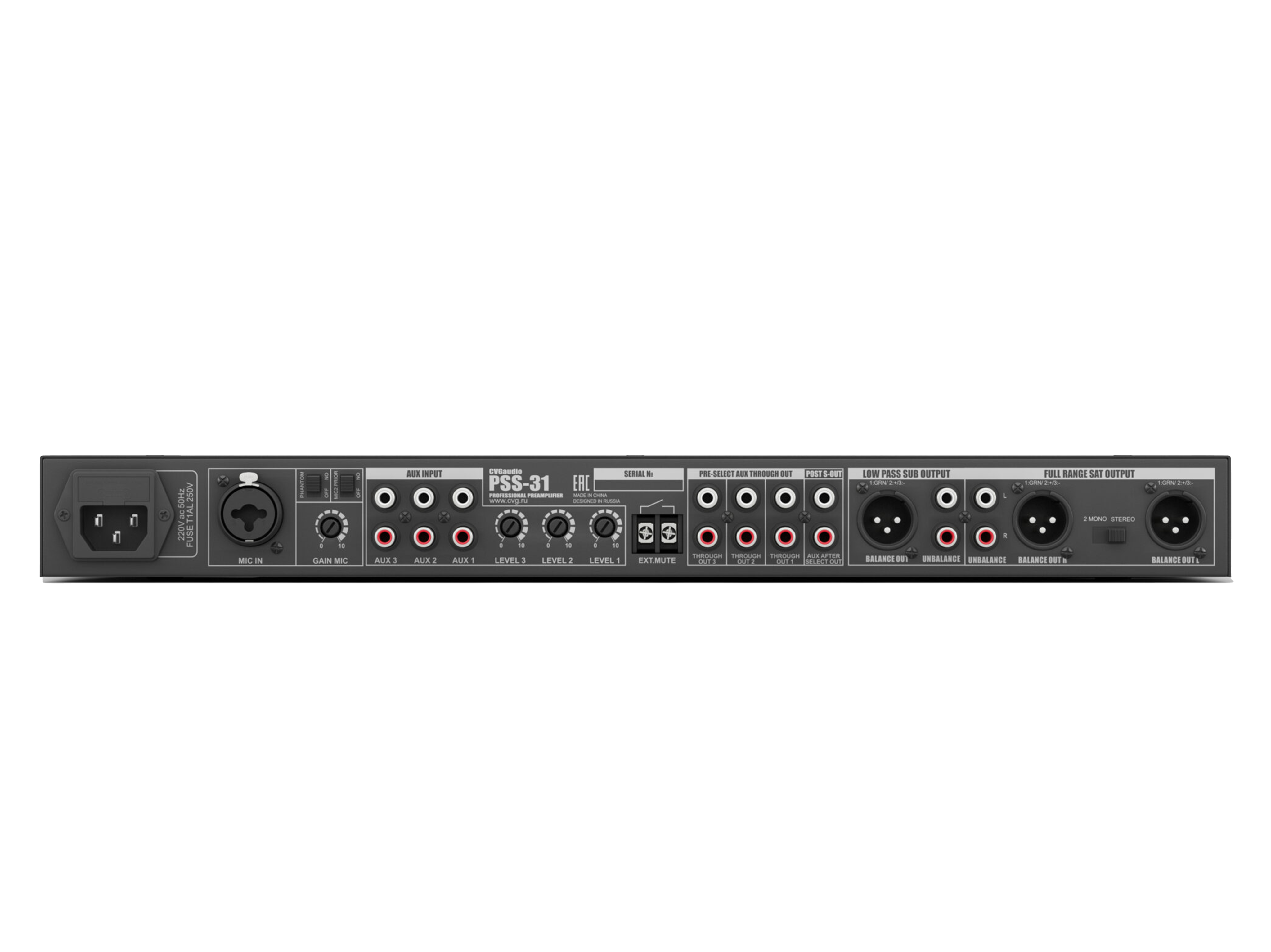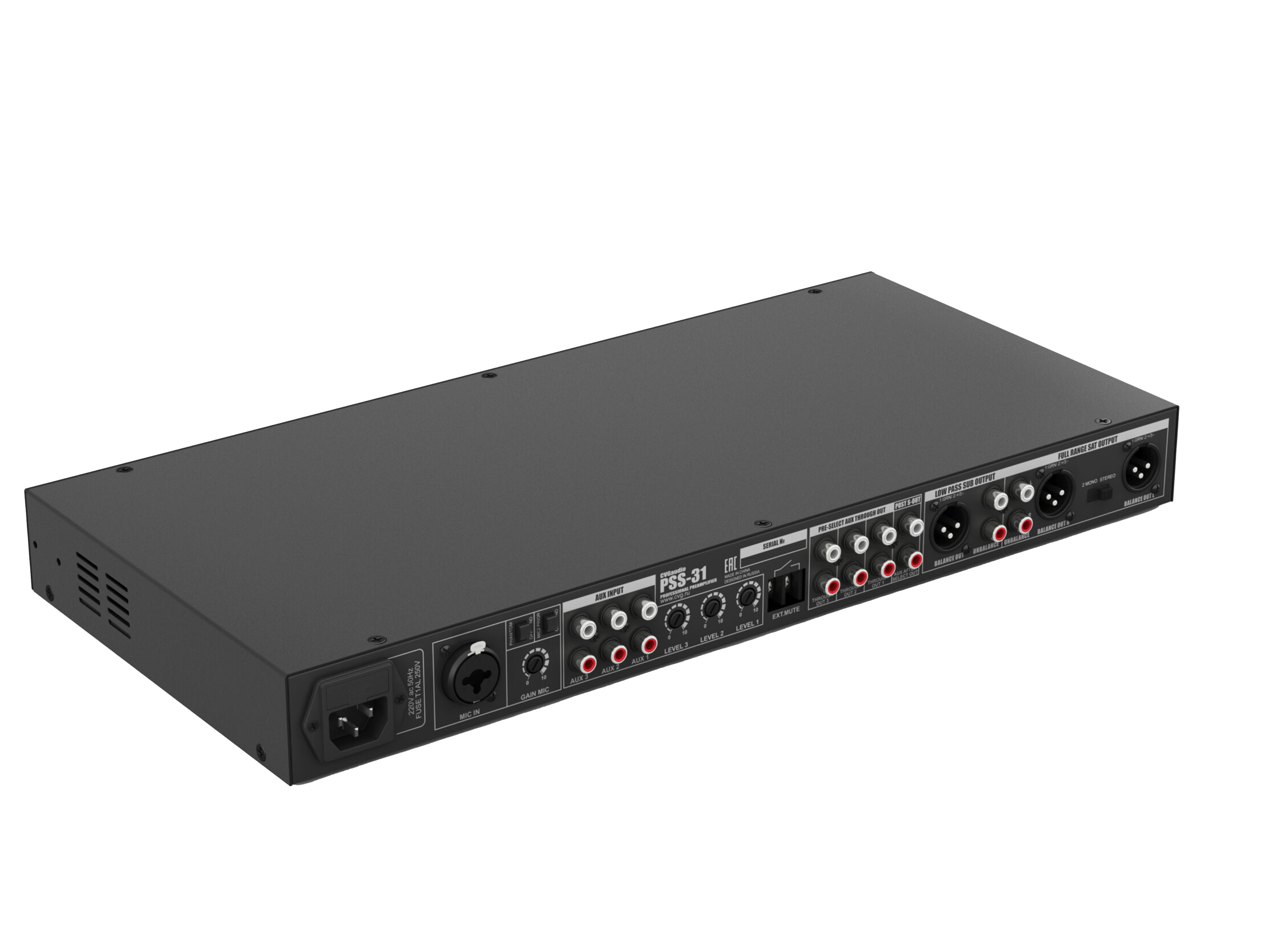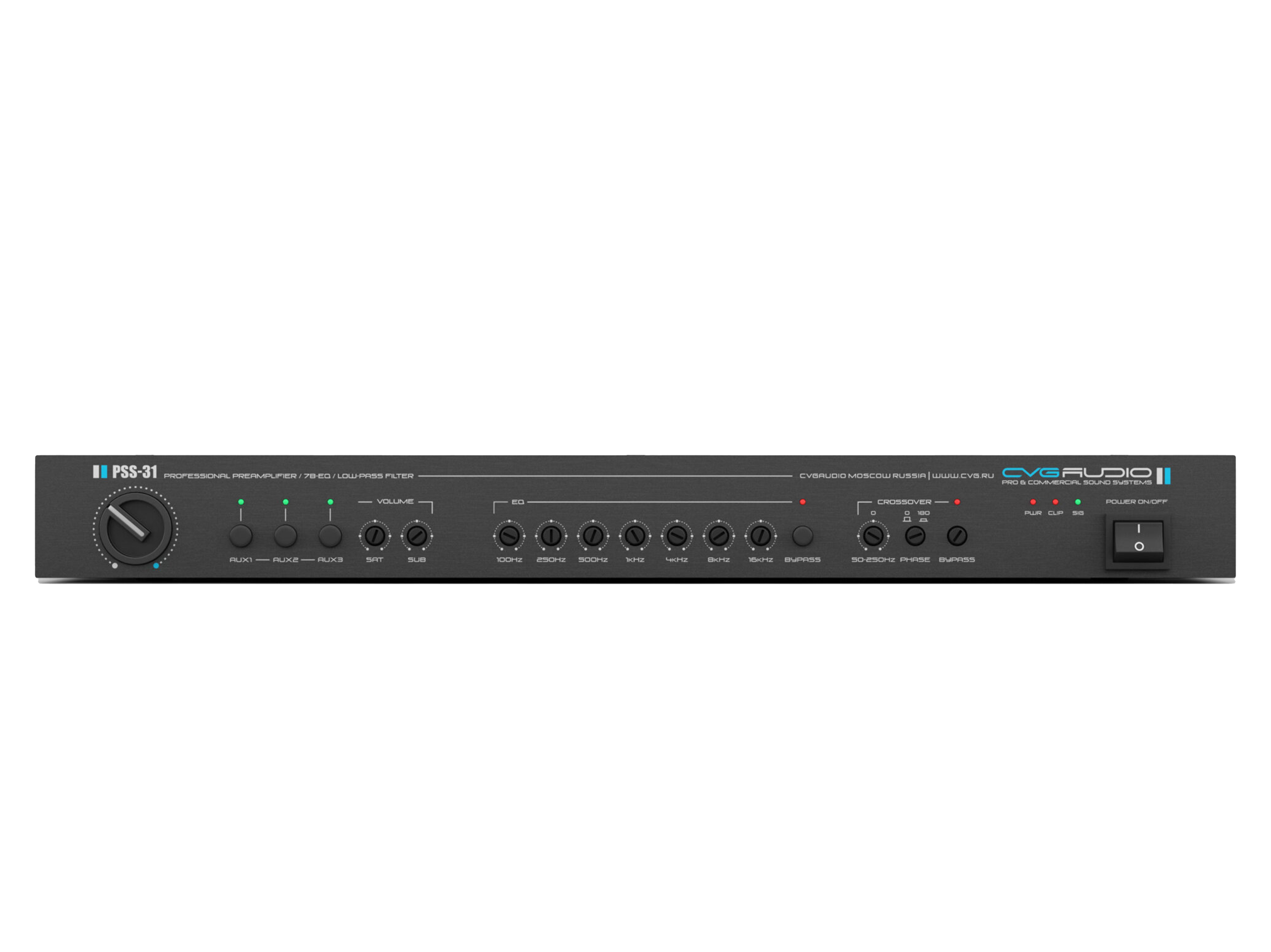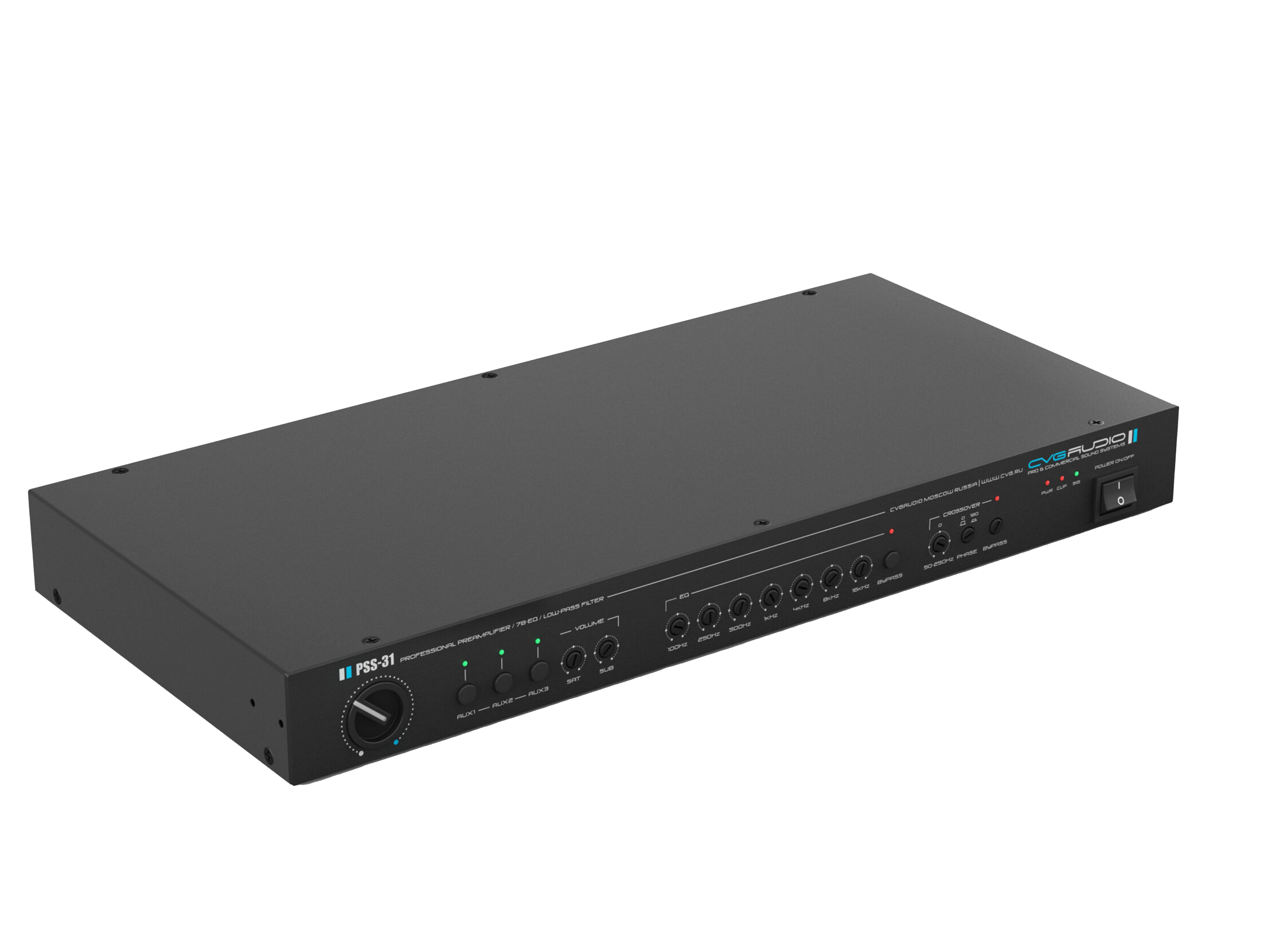 Профессиональный предусилитель/кроссовер/семи-полосный эквалайзер. Три линейных RCA входа, один суммарный выход для подключения сабвуферов, stereo/2mono двухканальный выход для подключения сателлитов. Управляющие контакты EXT.MUTE. Металлический корпус, алюминиевая лицевая панель, высота в монтажной стойке – 1U (кронштейны в комплекте поставки).