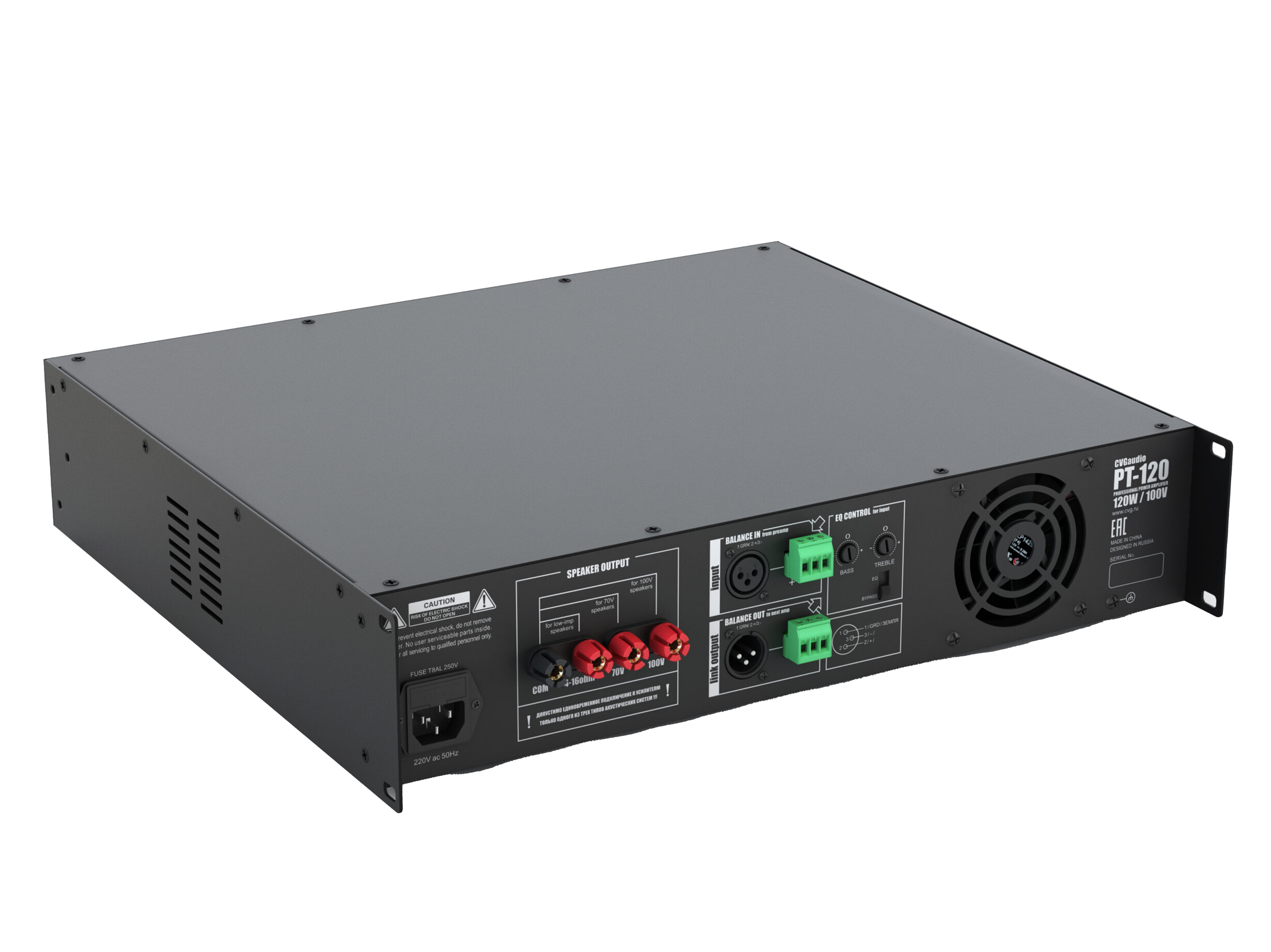 Профессиональный высококачественный усилитель мощности для систем трансляции фоновой музыки и речевого оповещения, мощность 120W / 100V, балансный XLR/Euro Block вход, линкующий XLR /Euro Block балансный выход. Двухполосный эквалайзер с возможностью режима обхода (ByPass), активное охлаждение. Металлический корпус, алюминиевая лицевая панель, высота в монтажной стойке – 2U (кронштейны в комплекте поставки)