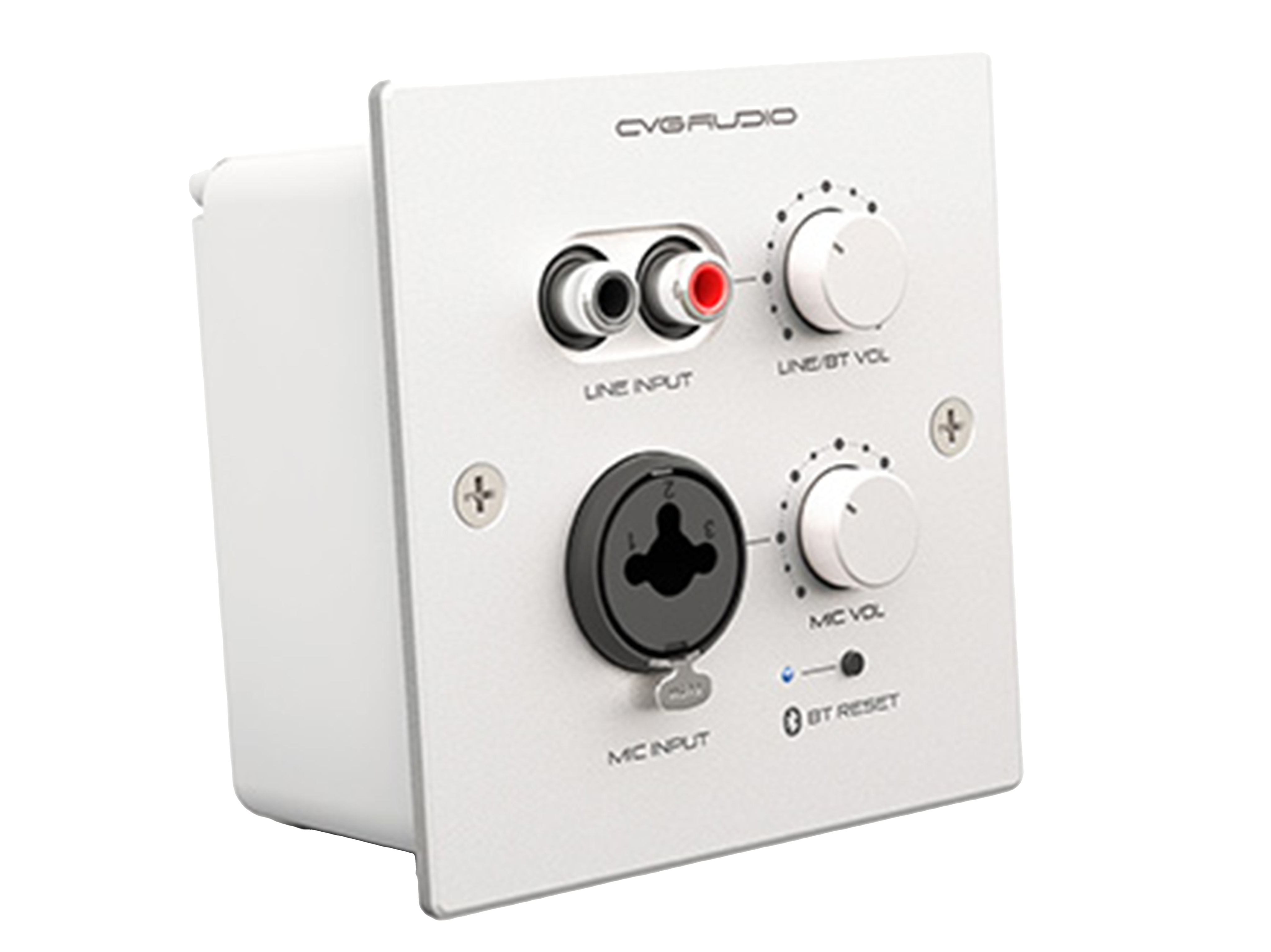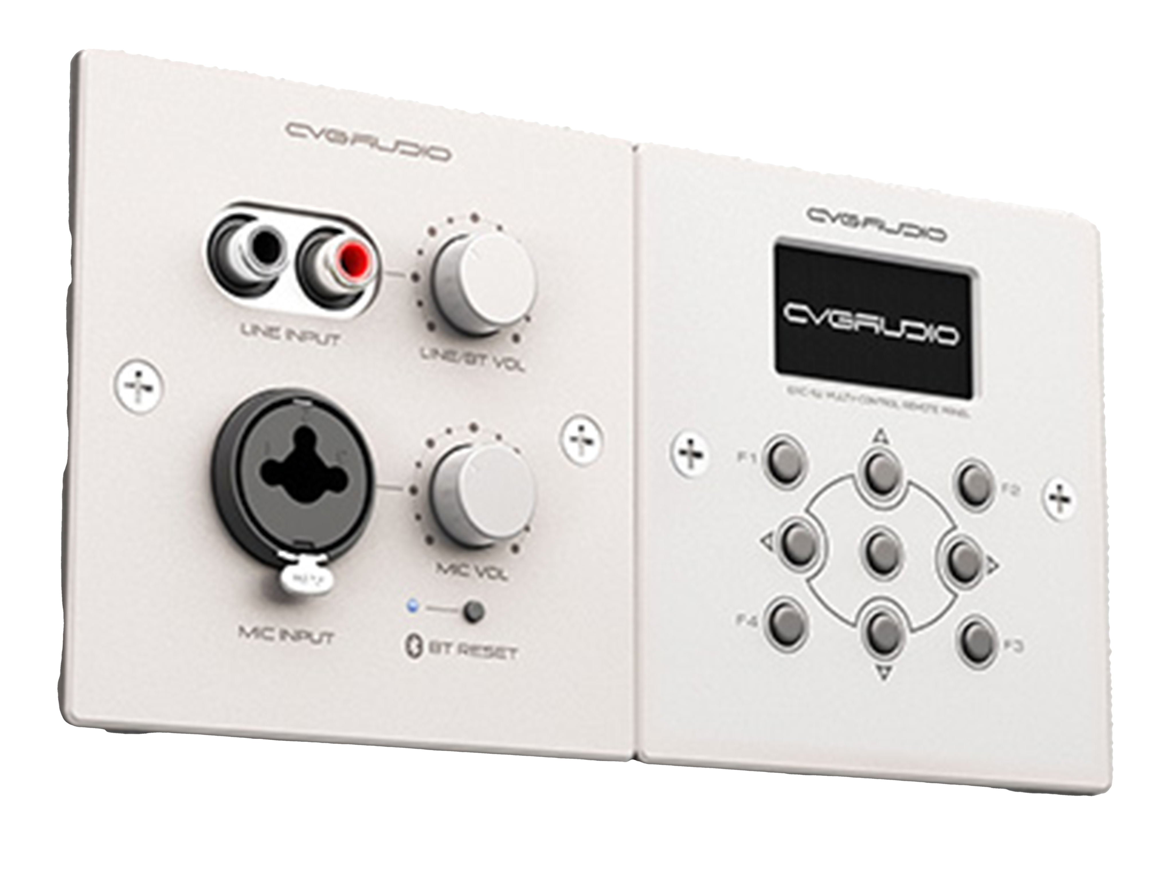 Настенная панель удаленного зонального подключения, MIC IN – XLR c фантомным питанием, LINE IN — 2RCA, Bluetooth с внутренней антенной-стикером. Раздельная регулировка громкости Line In плюс Blutooth и MIC IN. Питание 12V-24V. Совместим с процессорами семейства ZONER. Максимальное удаление при подключении по CAT5/6 – 100 метров. Выход – балансный моно / балансный стерео суммарный аудио сигнал. Bluetooth имеет возможность тонкой настройки, изменения названия сети, пин-кода на соединение и так далее. Радиус уверенного приема – 15m. Совместим с контроллерами CVGAUDIO ERC. Лицевая панель – светлый алюминий.