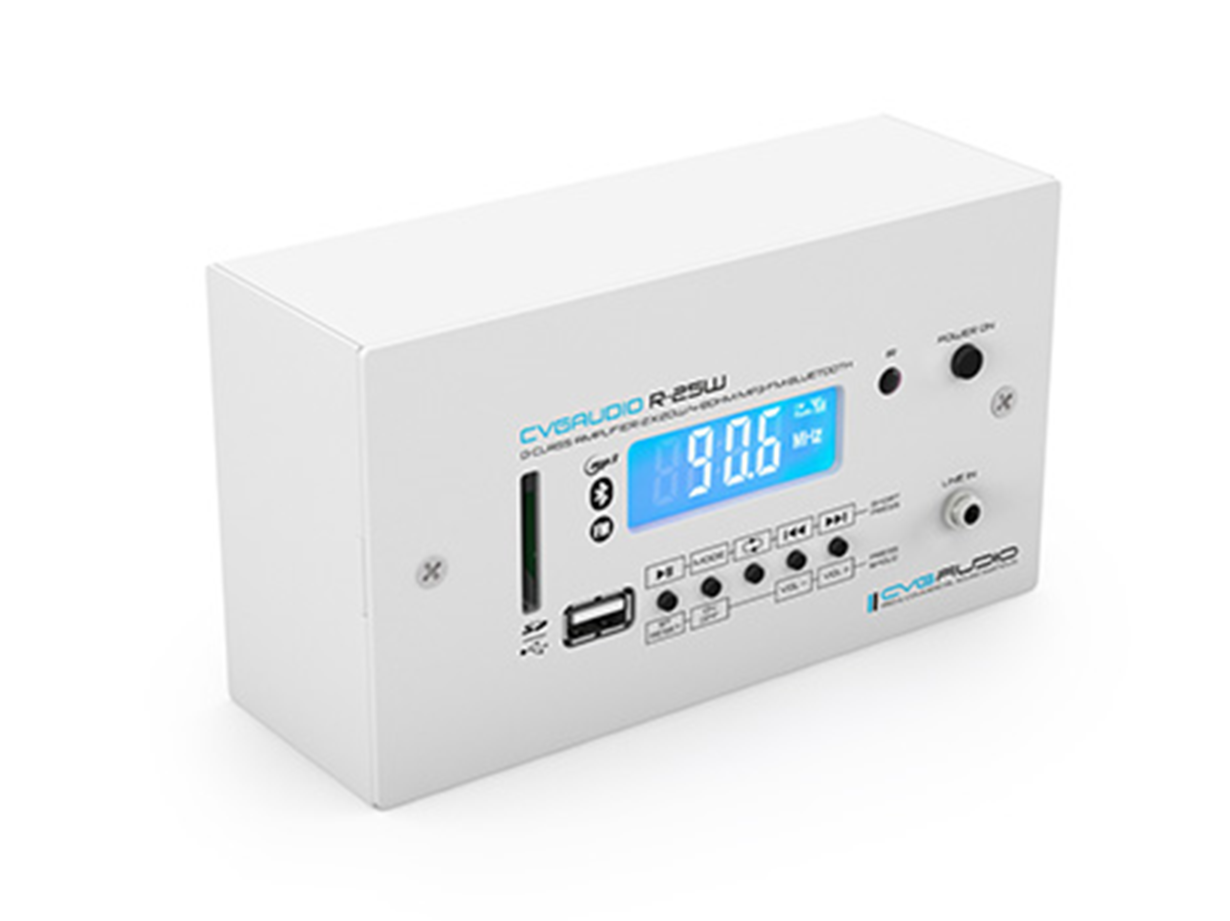 Комплект звукового оборудования и коммутации для системы трансляции фоновой музыки, две двухполосные встраиваемые в потолок АС, площадь озвучивания до 40m2 (при высоте потолка не менее 3,2m). Усилитель 2х15W/8ohm, встроенный модуль плеера MP3-FLAC (USB-SDcard) / FM / Bluetooth, линейный вход для подключения внешних источников сигнала. Цвет акустики — белый.
