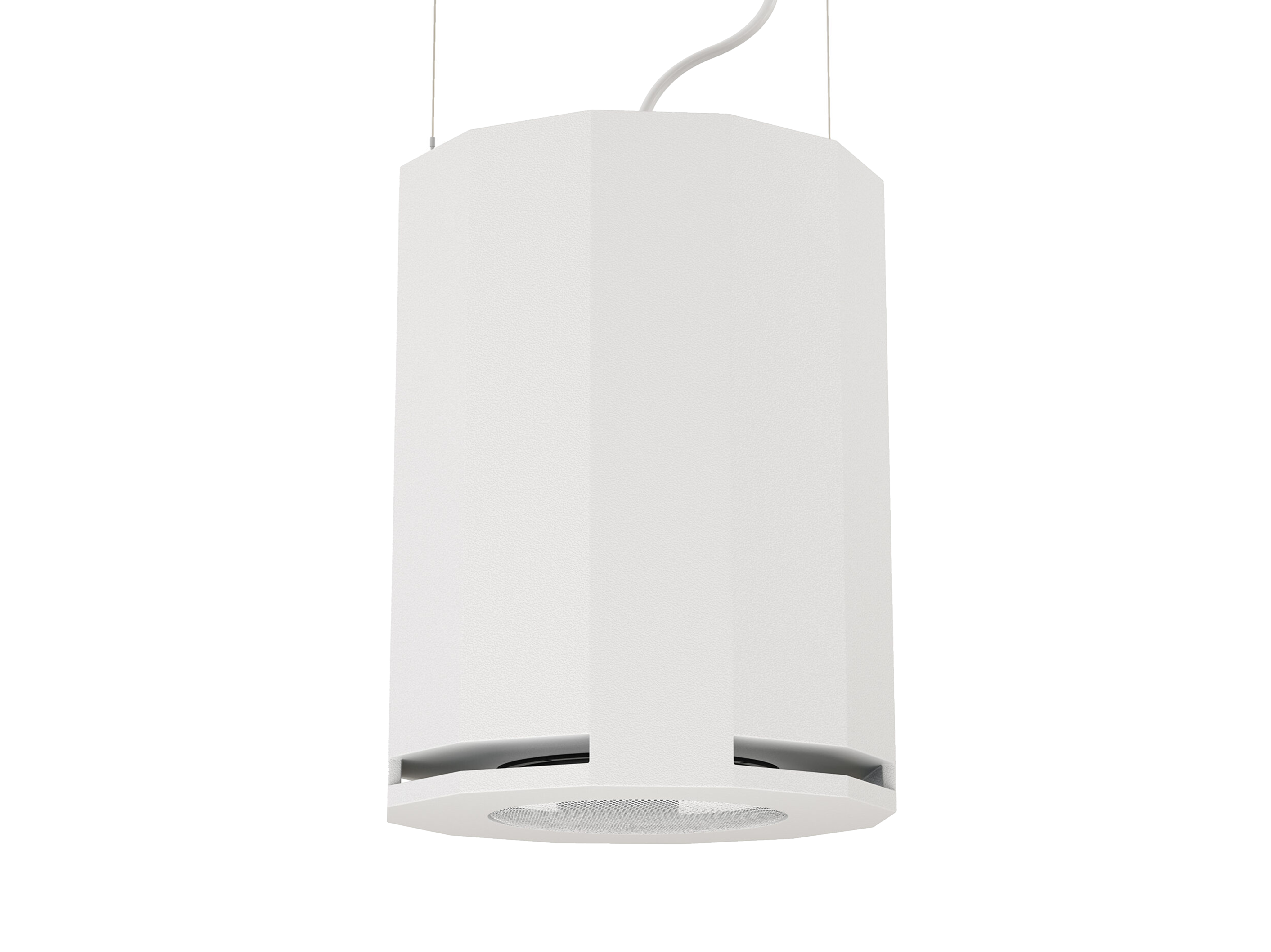 Подвесной инсталляционный сабвуфер, диффузор динамика — 8″ (205mm). Номинальное сопротивление — 4ohm. Подвес к потолку, комплект крепления для установки – опция. Мощность — 150W(RMS) / 300W(max). Встроенный пассивный кроссовер 120Hz. Корпус — фазоинвертор, цвет белый. Вес – 13,2kg