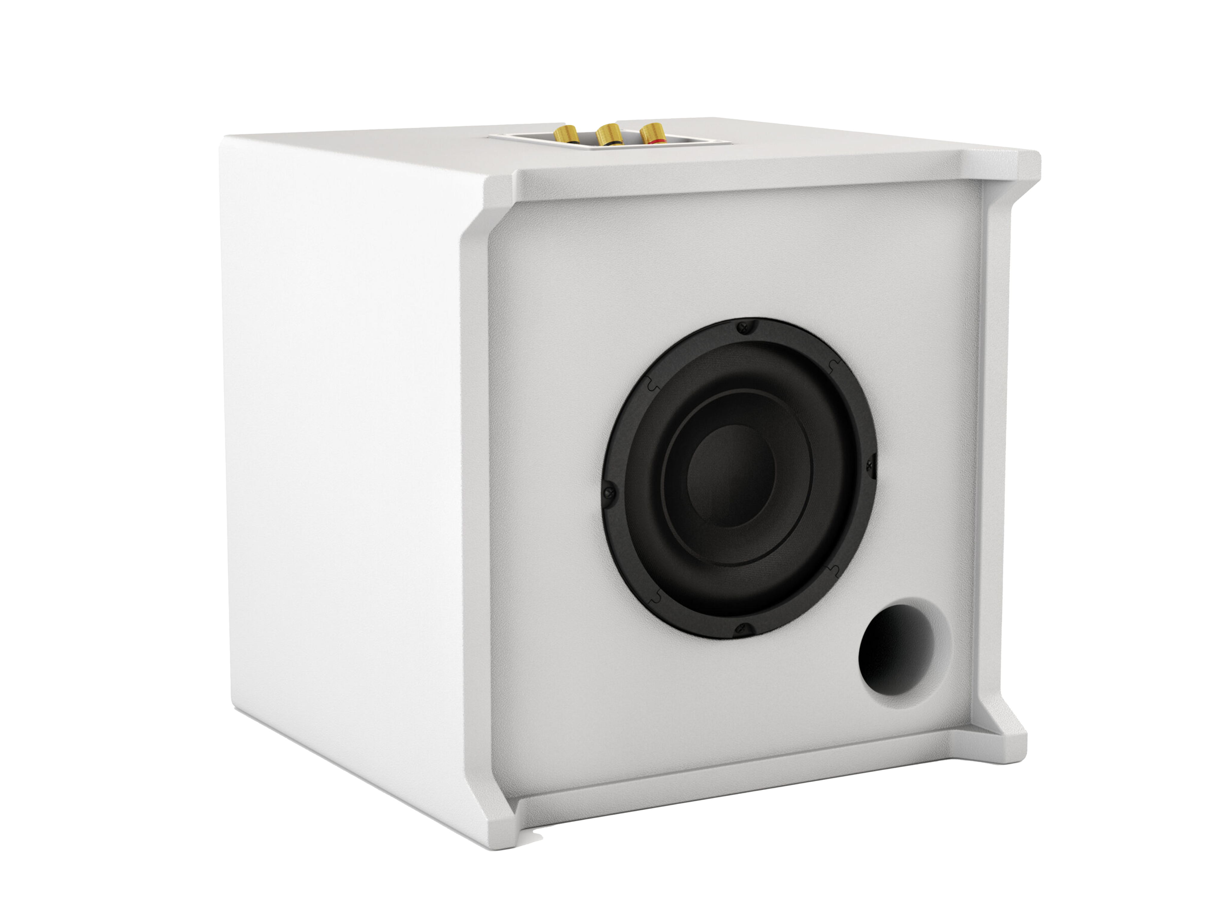 Напольный активный сабвуфер, размерность динамика — 6.5″(165mm), мощность — 150W, встроенный усилитель D-class, настраиваемый активный Low-Pass фильтр 50Hz-180Hz, поворот фазы – 180гр. AUTO ON/OFF при обнаружении / пропадании входящего звукового сигнала от источника, аварийный контакт EXT.MUTE (нормально разомкнутый). Фазоинвертор, материал – МДФ, габарит — 332x332x383mm, цвет белый