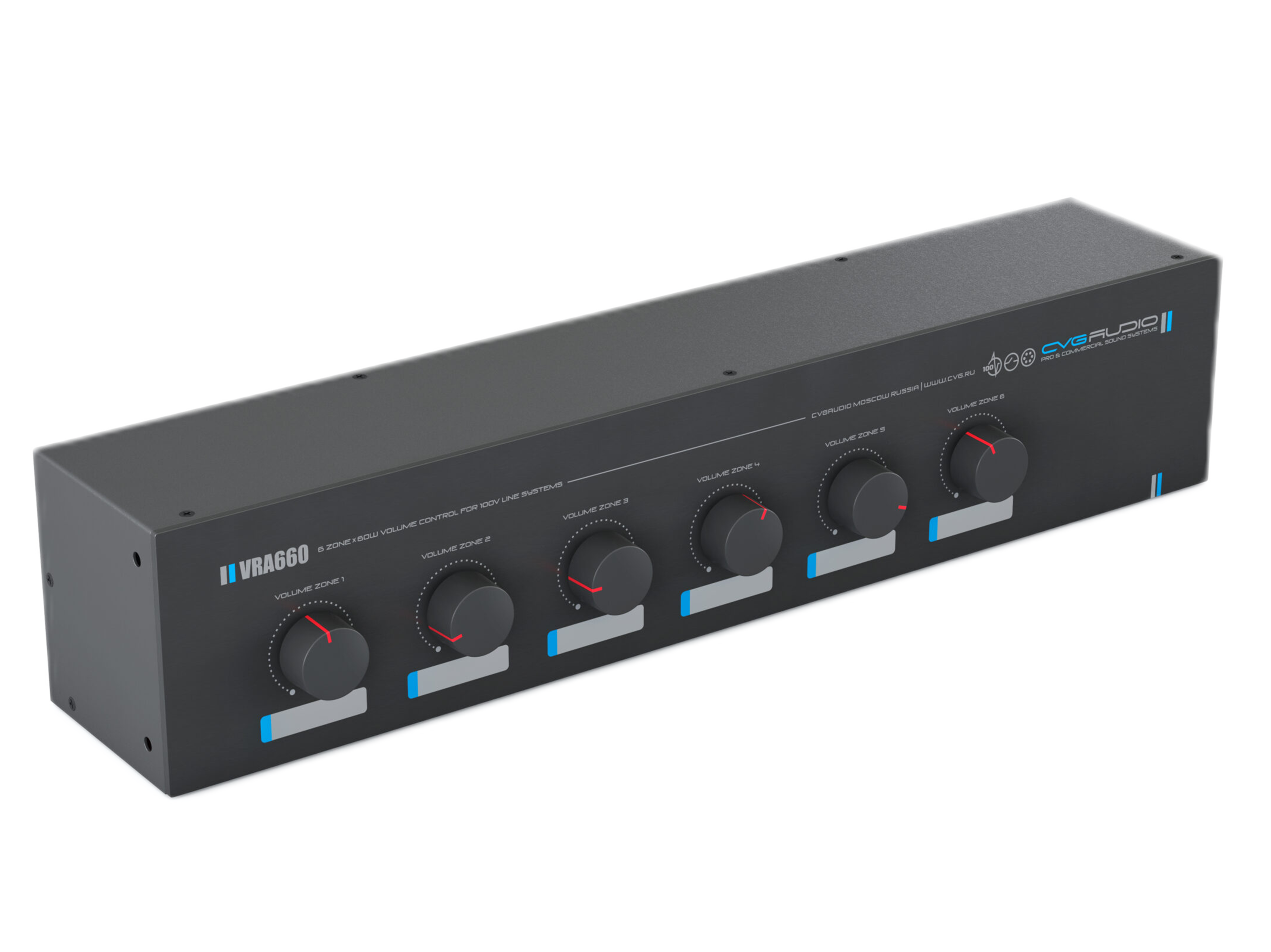 Шестиканальный, 2U-рэковый, 11-позиционный регулятор громкости для 100V трансляционных систем. Максимальная мощность нагрузки для каждого канала– 60W/100V. 24V/0.6A аварийное реле обхода индивидуально для каждого канала. Металлический корпус, габаритный размер — 430mm x 100mm x 88mm. Вес – 3,3kg.