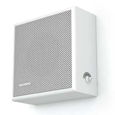 5″ (122,5mm) широкополосный настенный абонентский громкоговоритель для трансляционных 100V систем Public Address, встроенный шестипозиционный аттенюатор на боковой стороне корпуса (0,38/0,75/1,5/3/6W/off). Корпус белого цвета, ABS пластик, металлическая решетка на лицевой стороне. Не требует кронштейна, навесной монтаж на два самореза. Самозажимной кабельный терминал. Для установки в помещениях (indoor). Габариты: 203mm x 203mm x 88mm.