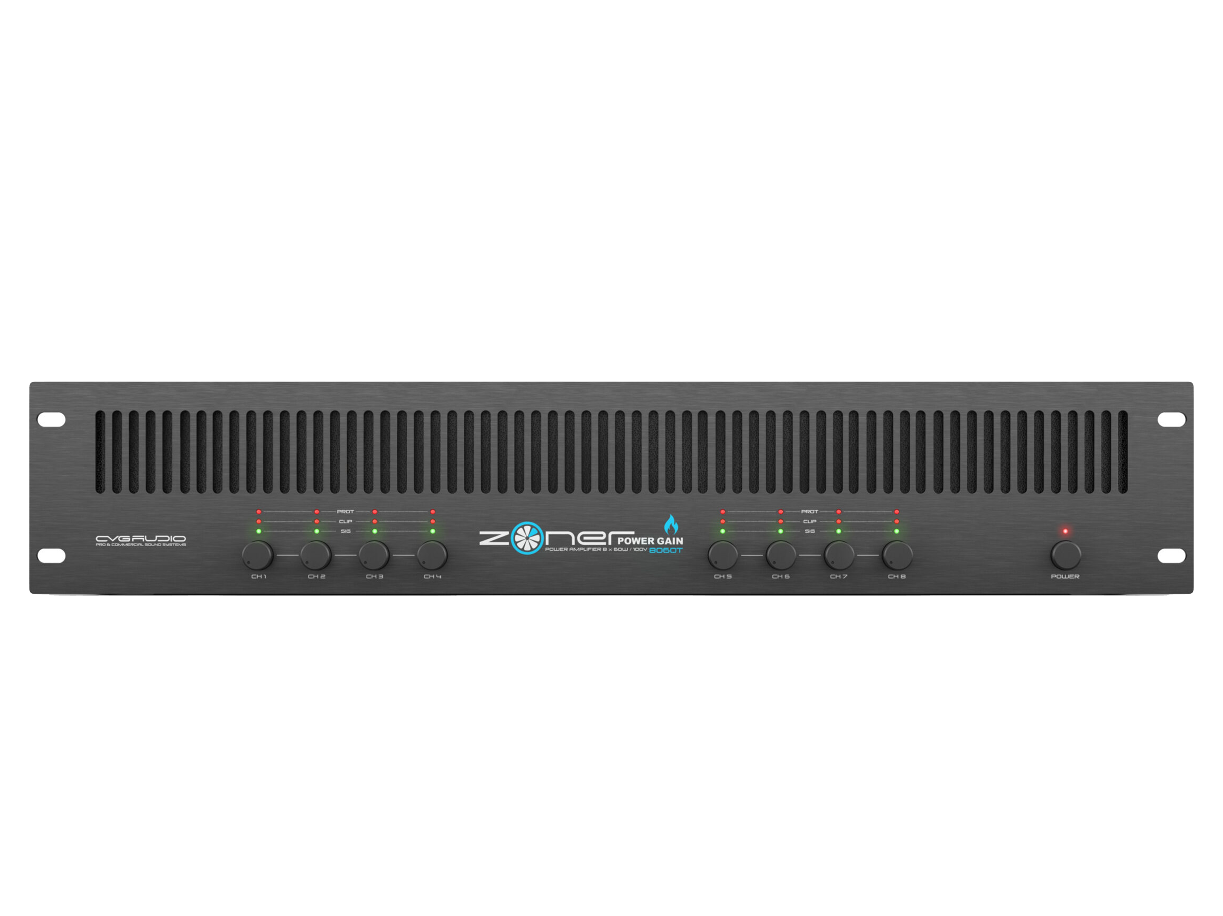 8-ми канальный трансляционный усилитель мощности. Предназначен только для работы в составе 100V трансляционных систем. Мощность 8x60W/100V. Работает в D-class. Балансный вход и сквозной балансный выход на 3-pin разъемах EURO-BLOCK, аварийные контакты управления — EXT.MUTE, 2U