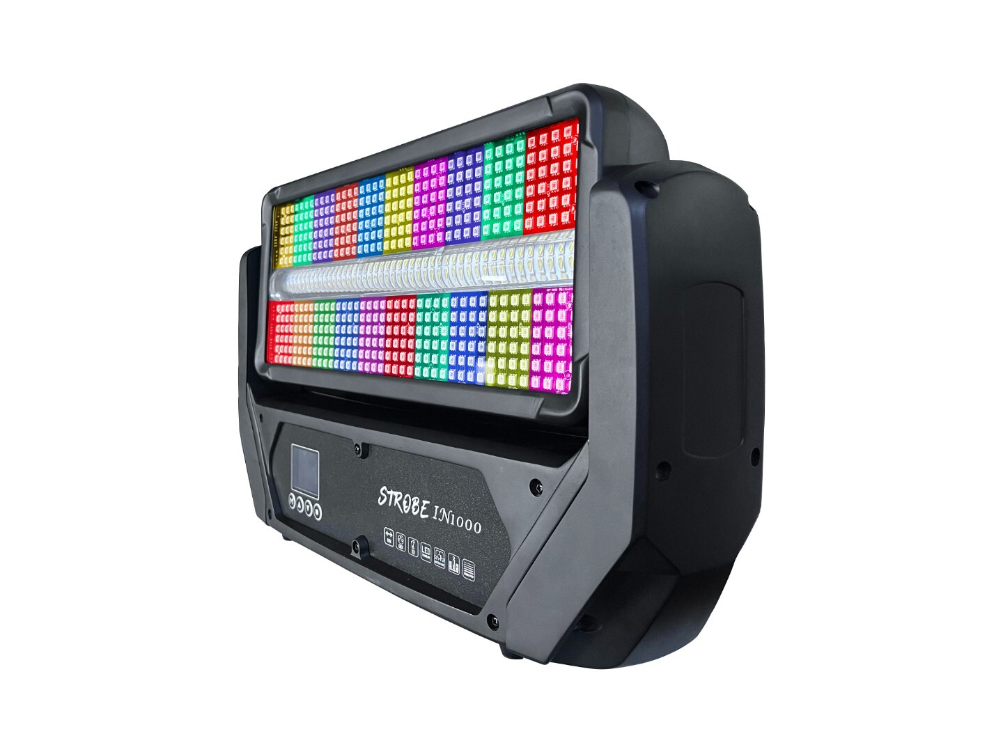 Светодиодный стробоскоп. Источники света 480 светодиодов по 1,5Вт (RGB) + 144 светодиода по 5 Вт Cool White + Amber. Угол поворота по TILT 185 градусов. Управление по DMX 10/20/77 каналов, RDM. Потребление(пиковое): 1000 Вт. Габариты: 448*122*292 мм. Вес: 8,5кг.