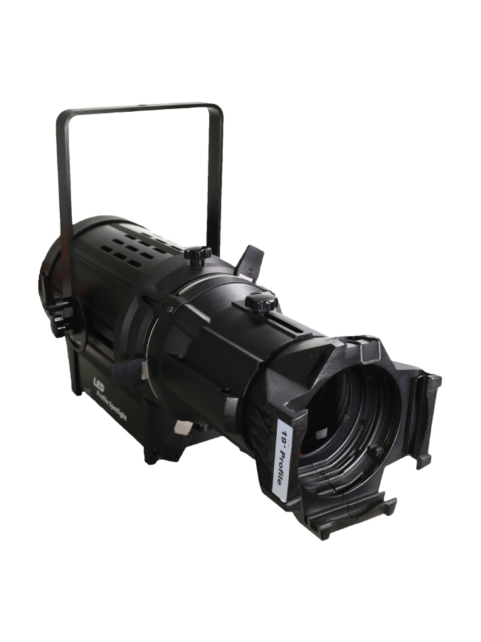 Театральный прожектор с профилированием луча. Источник света COB LED Citizen 200w, White, питание: AC90V-120V/200V-250V, 50Hz/60Hz , цветовая температура 3200K/5000K , угол раскрытия луча: фиксированный (19°/26°/36°), количество каналов DMX: 1.Вес: 8.6 кг. Размер: 538х270х395 мм