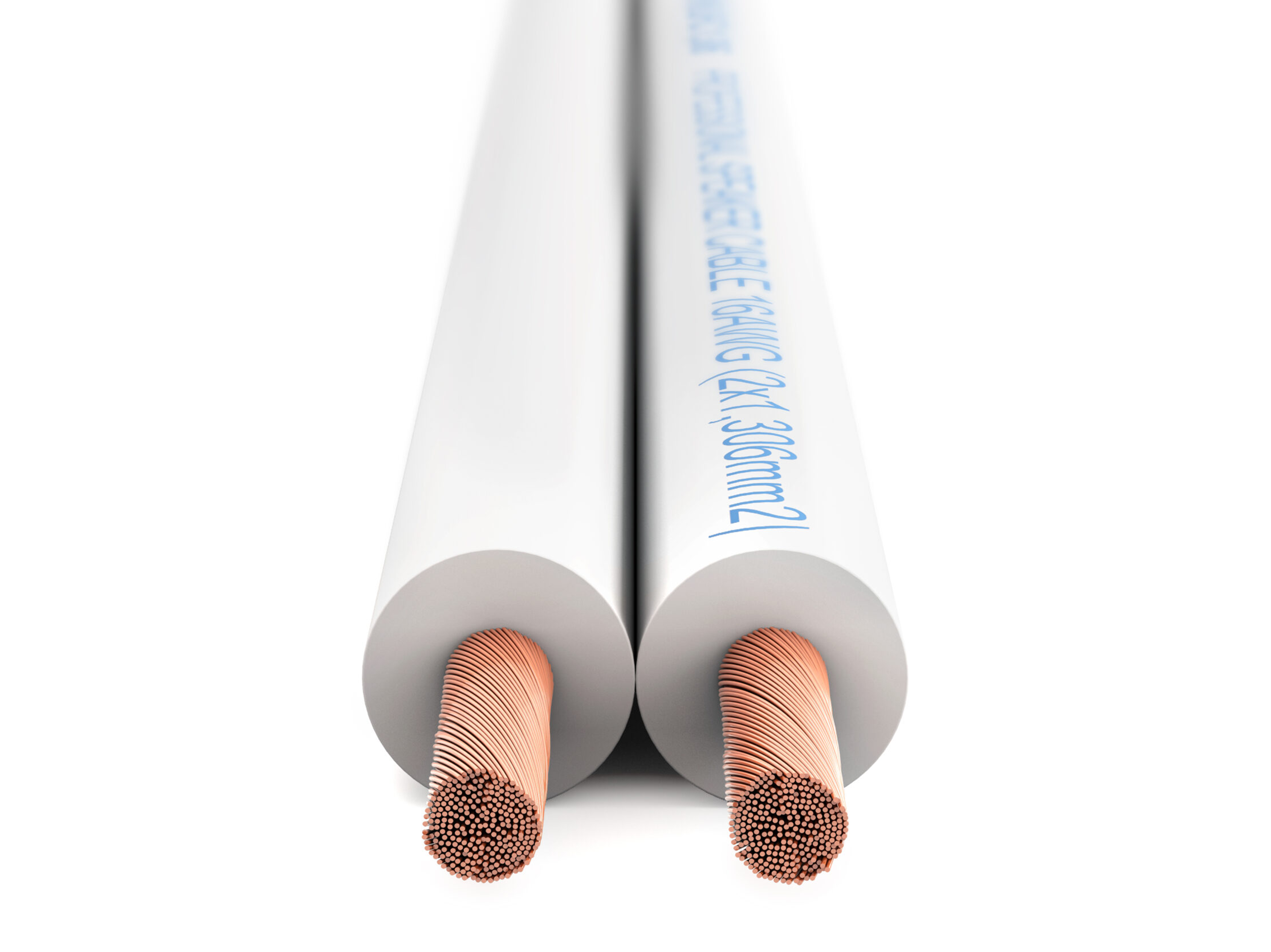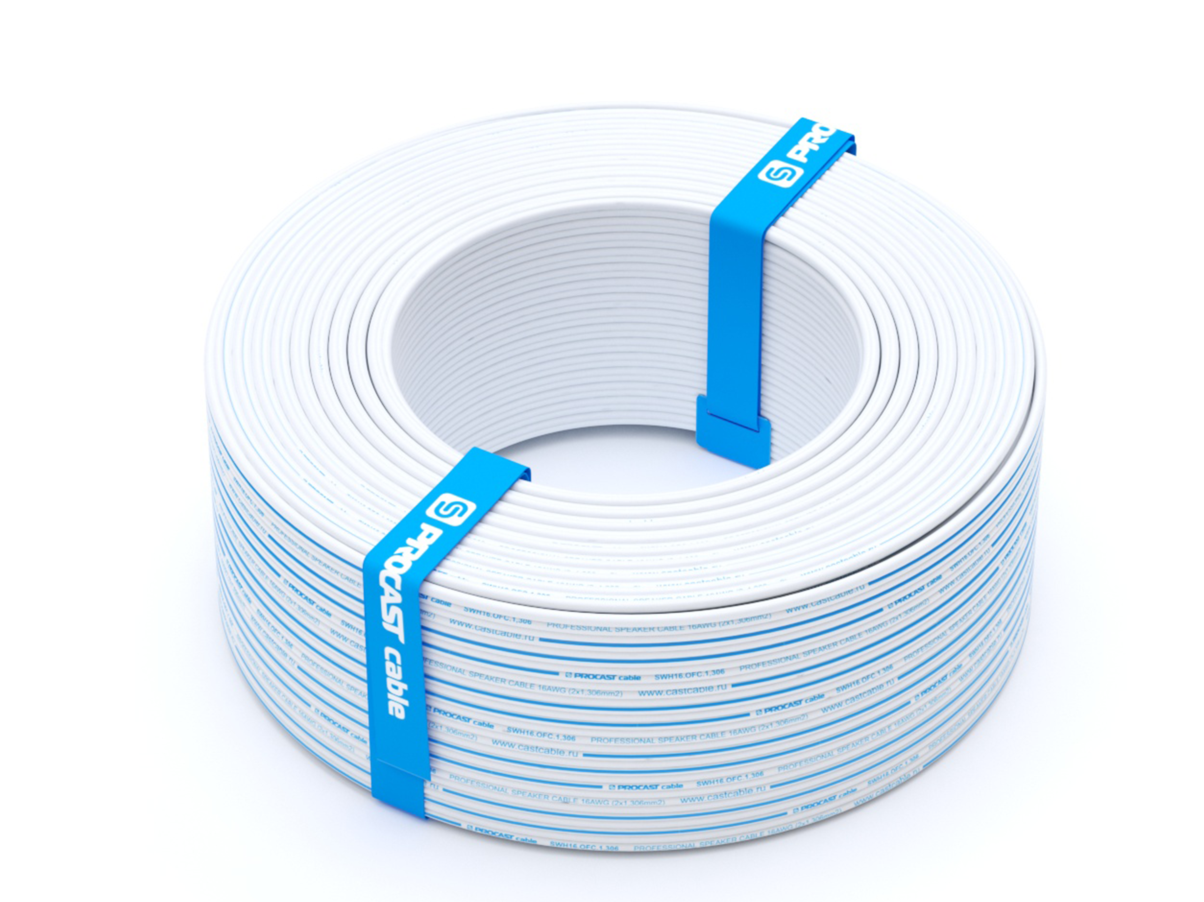 Профессиональный инсталляционный спикерный (акустический) кабель, 16AWG (2×1,306mm2), белый, 65/0,16mm OFC (99,97%), бухта 100m