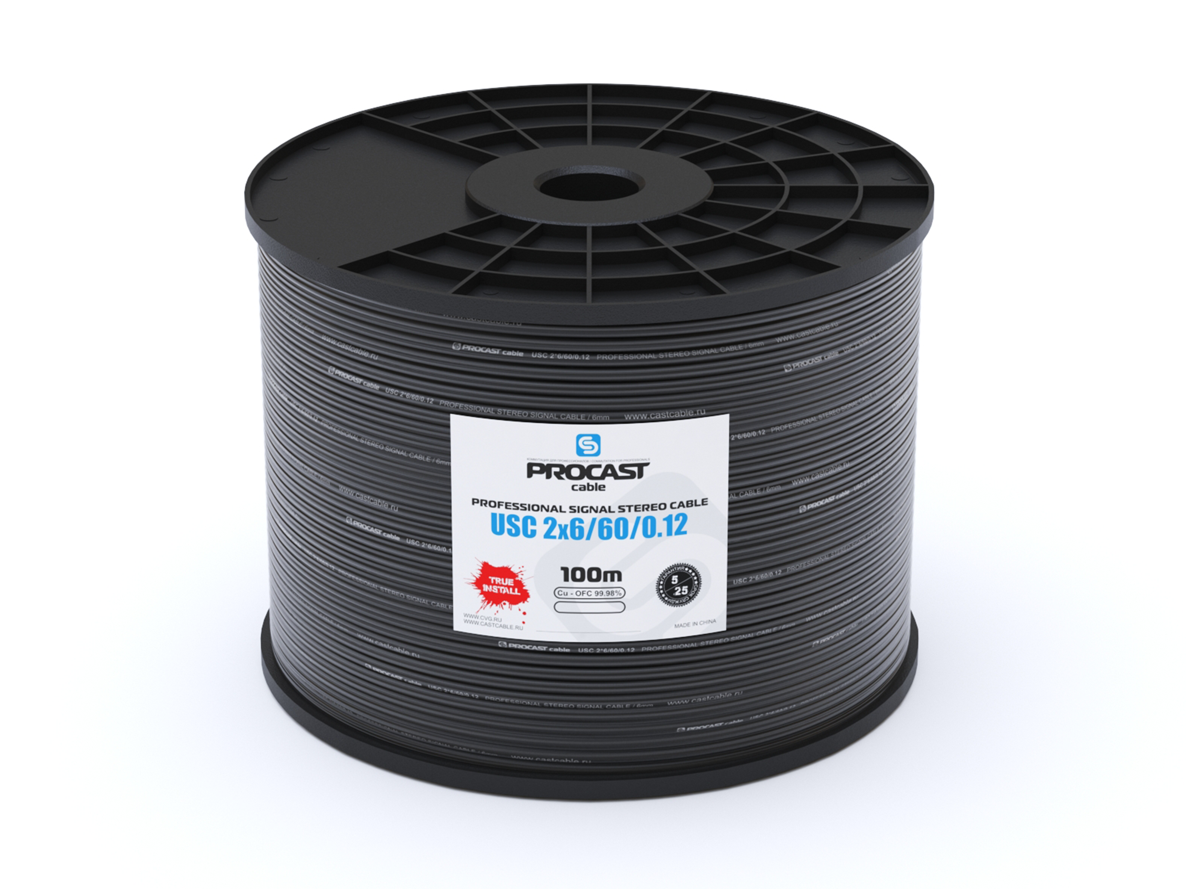 Профессиональный инсталляционный двухканальный (стерео) сигнальный кабель, внешний диаметр D=2x6mm, (28/0,12BC+PE2,3+Al Foil+SP60/0,12BC) x2+PVC 6×2, черный, 100m