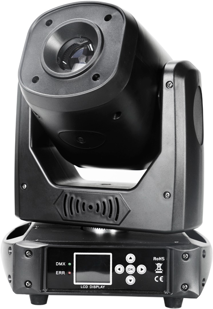 Вращающаяся голова Spot, светодиод 100 Вт. Угол раскрытия луча 14.3°. 7 цветов + белый, 6 вращающихся гобо + открытая, вращающаяся трехгранная призма. Pan 540° Tilt 270°. Электронный диммер 0-100%, строб. Управление: DMX512, количество каналов DMX 17, звуковая активация, автоматический режим, master/slave. Габариты: 351 x 254 x 240 мм. Вес: 6.39 кг.