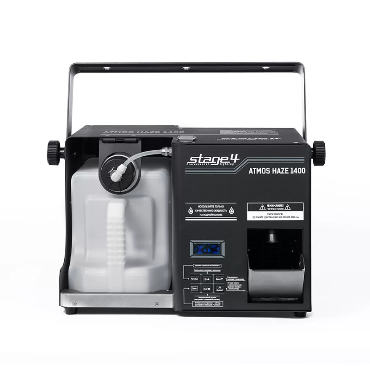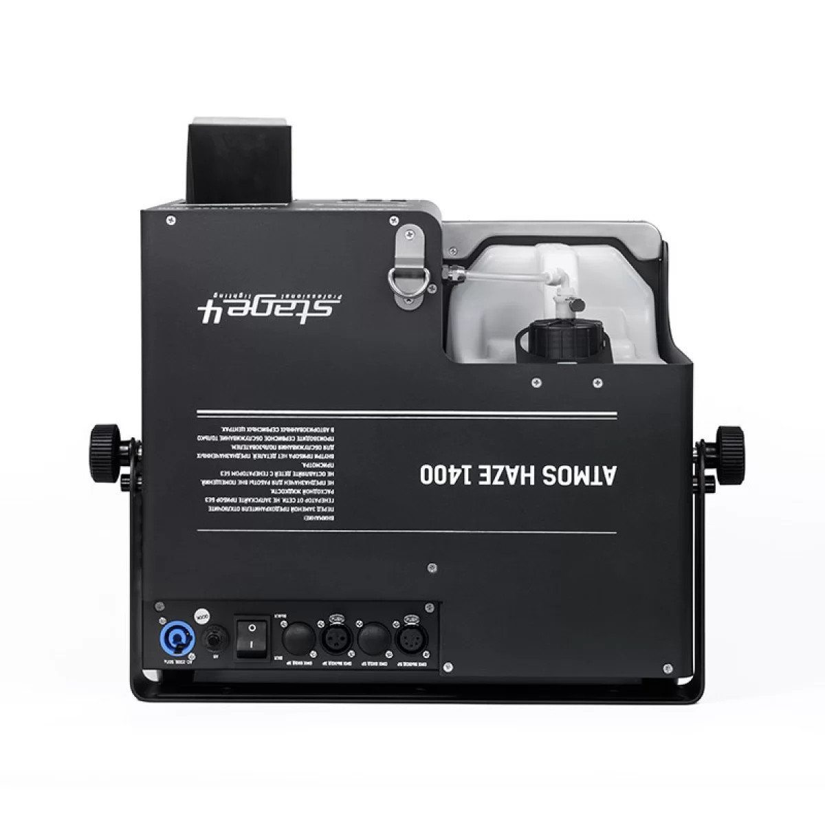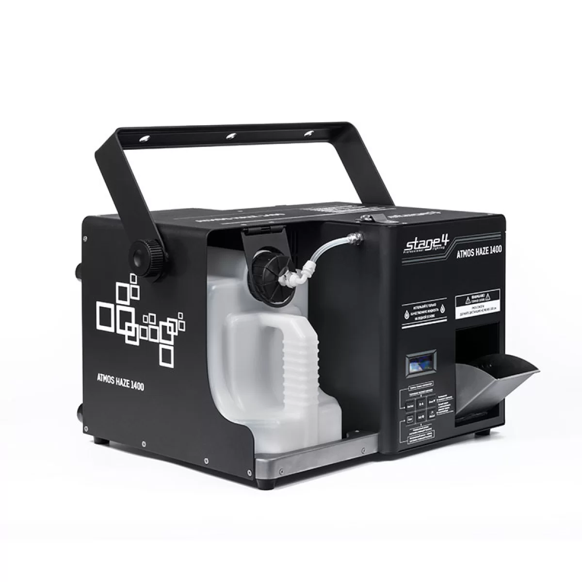 STAGE4 ATMOS HAZE 1400 — профессиональный генератор тумана (хейзер), который создаёт равномерный туман для усиления световых эффектов на сцене. Его нагревательный элемент мощностью 1400 Вт вместе с вентилятором 100 Вт обеспечивает заполнение пространства дымкой объёмом 425 кубометров в минуту. Устройство достигает рабочей температуры за 60 секунд и управляется через DMX с удобным LCD-дисплеем. Металлический корпус гарантирует надёжность и подходит для стационарных инсталляций.