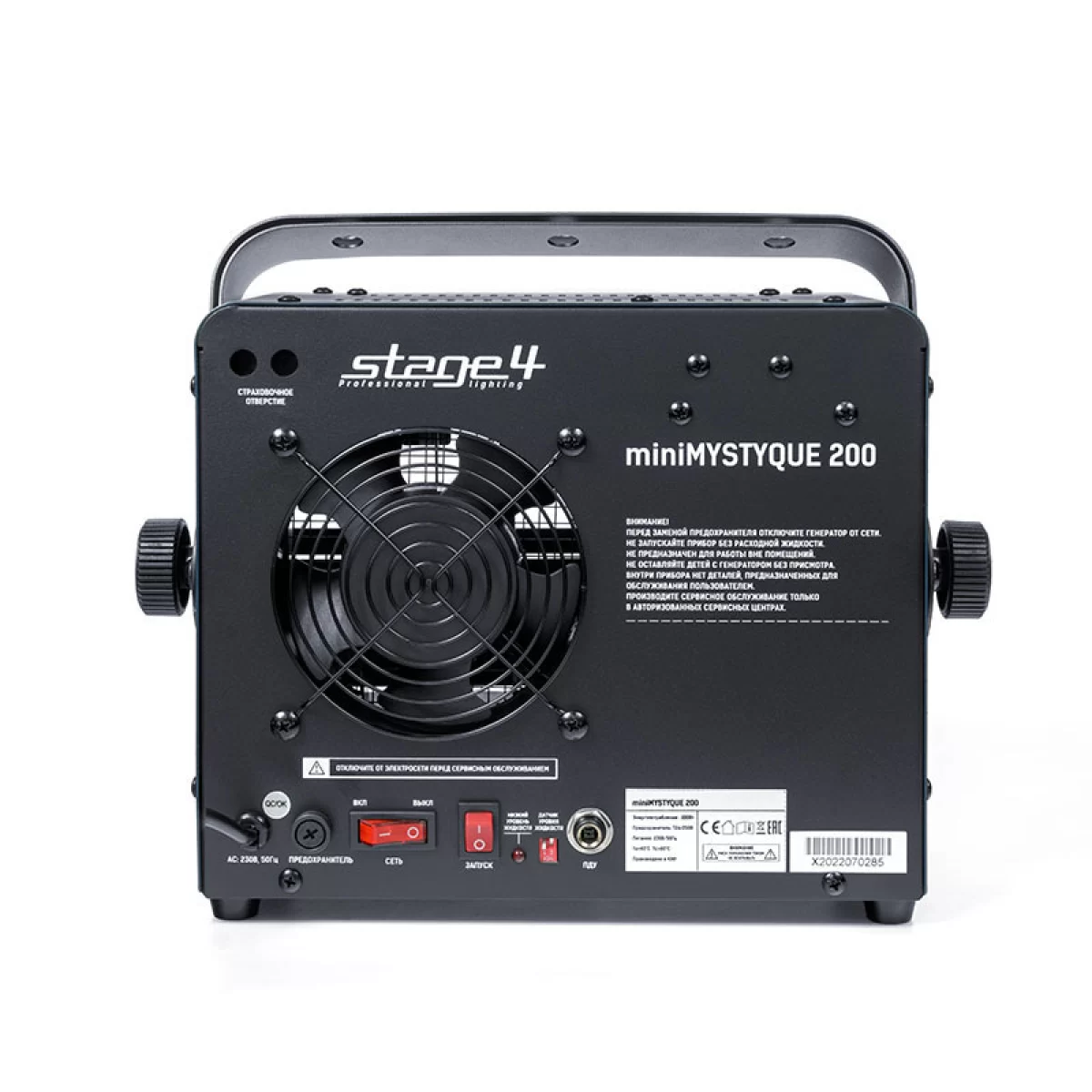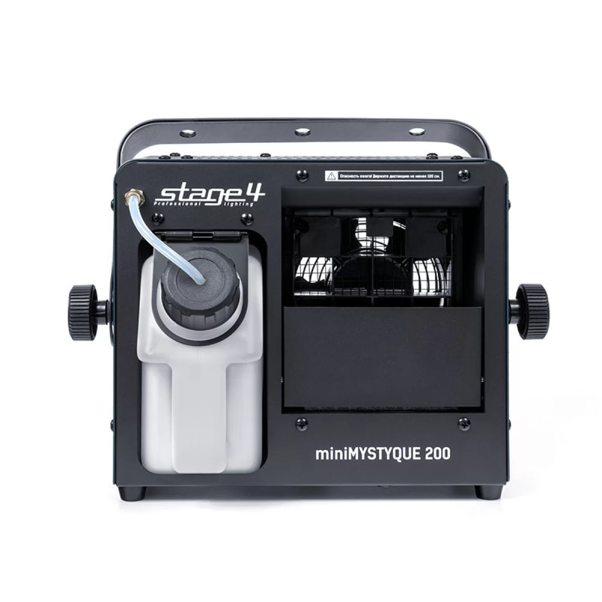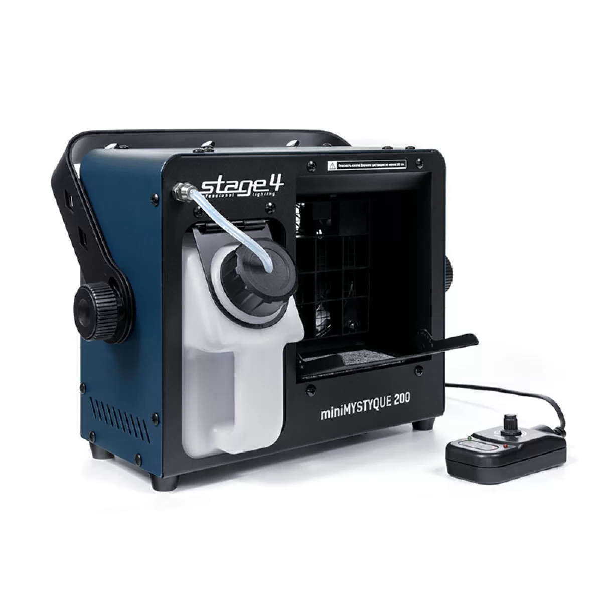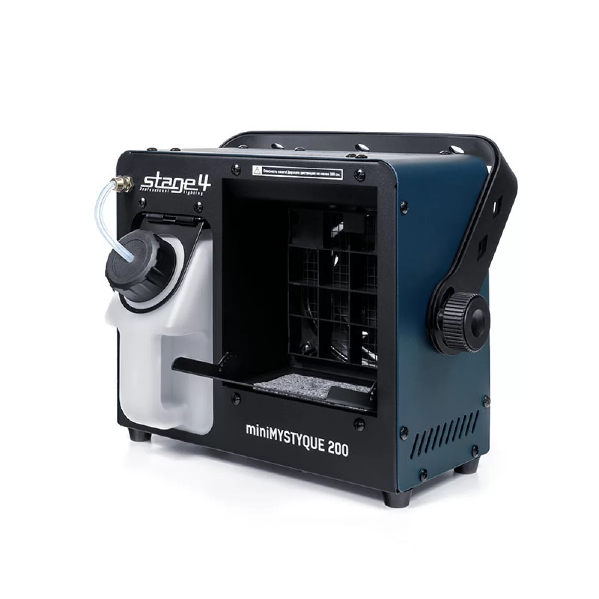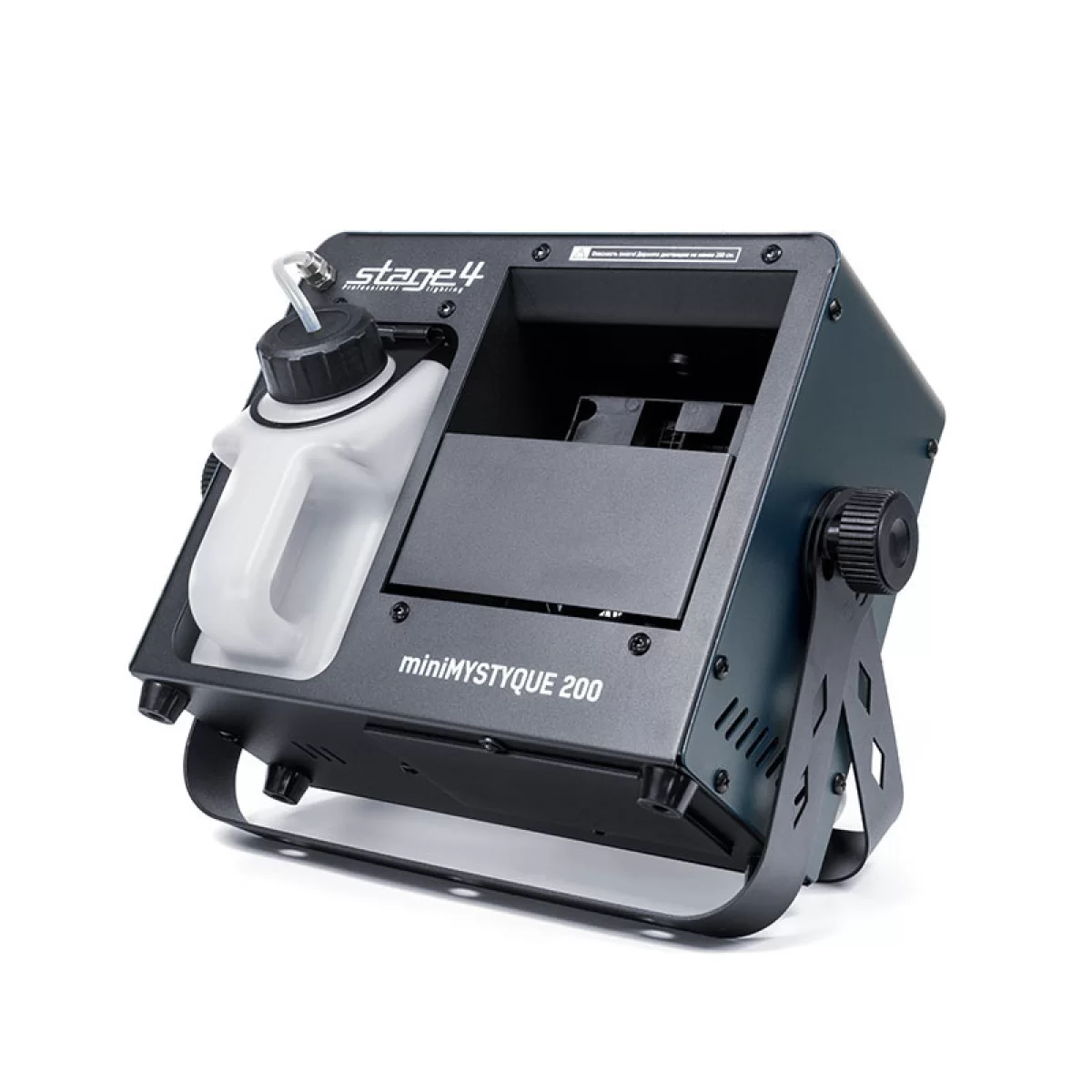STAGE4 MINIMYSTYQUE 200 — компактный генератор тумана, создающий легкую дымку на водной основе для усиления световых лучей в помещениях малого и среднего объема. Этот хейзер достигает рабочей температуры всего за минуту, дает возможность регулировать интенсивность тумана от 1 до 100 процентов и оснащен системой автоматической очистки, которая увеличивает срок службы устройства. Конструкция с двойными лирами облегчает подвес или установку на полу, а регулируемые шторки меняют угол рассеивания до 90 градусов, что позволяет быстро адаптировать эффект под параметры помещения.