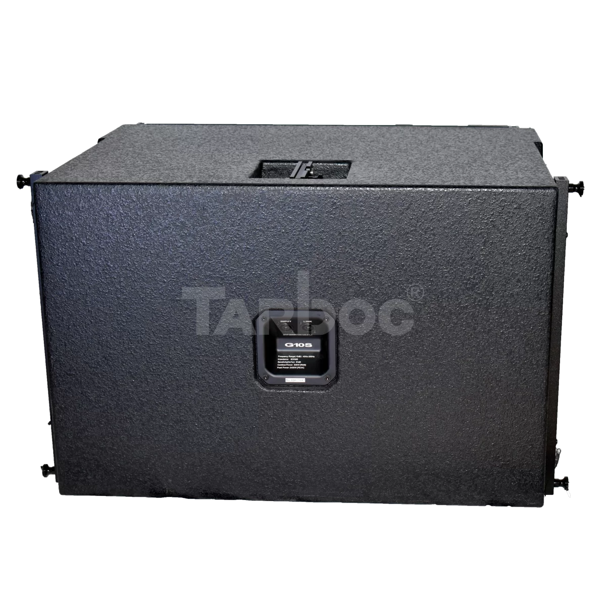 TARBOC G‑10S (MM‑1‑3349) — пассивный сабвуфер линейного массива, предназначенный для усиления низкочастотного диапазона в профессиональных звуковых системах. Устройство обеспечивает мощное и чёткое воспроизведение басов с частотным диапазоном от 35 Гц до 250 Гц и способен развивать звуковое давление до 132 дБ. Сабвуфер оснащён 1 × 10‑дюймовым низкочастотным динамиком с 75‑мм звуковой катушкой, что гарантирует глубокий, контролируемый бас даже при высокой громкости. Корпус выполнен из прочной берёзовой фанеры, имеет компактные габариты (650 × 550 × 600 мм) и матовое чёрное покрытие, обеспечивающее эстетичную интеграцию в линейный массив. Подключение реализовано через два разъёма Speakon NL4. Благодаря продуманной акустической конструкции и надёжной сборке, G‑10S идеально подходит для концертных площадок, клубов и мероприятий, где требуется насыщенный и динамичный низкочастотный отклик