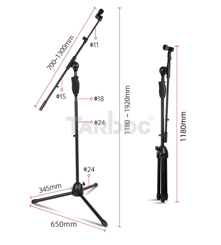 TARBOC RH‑HT909 (MM‑1‑3423) — универсальная микрофонная стойка треножного типа для профессионального и любительского использования. Конструкция обеспечивает надёжную фиксацию микрофона и позволяет легко настраивать его положение в пространстве.