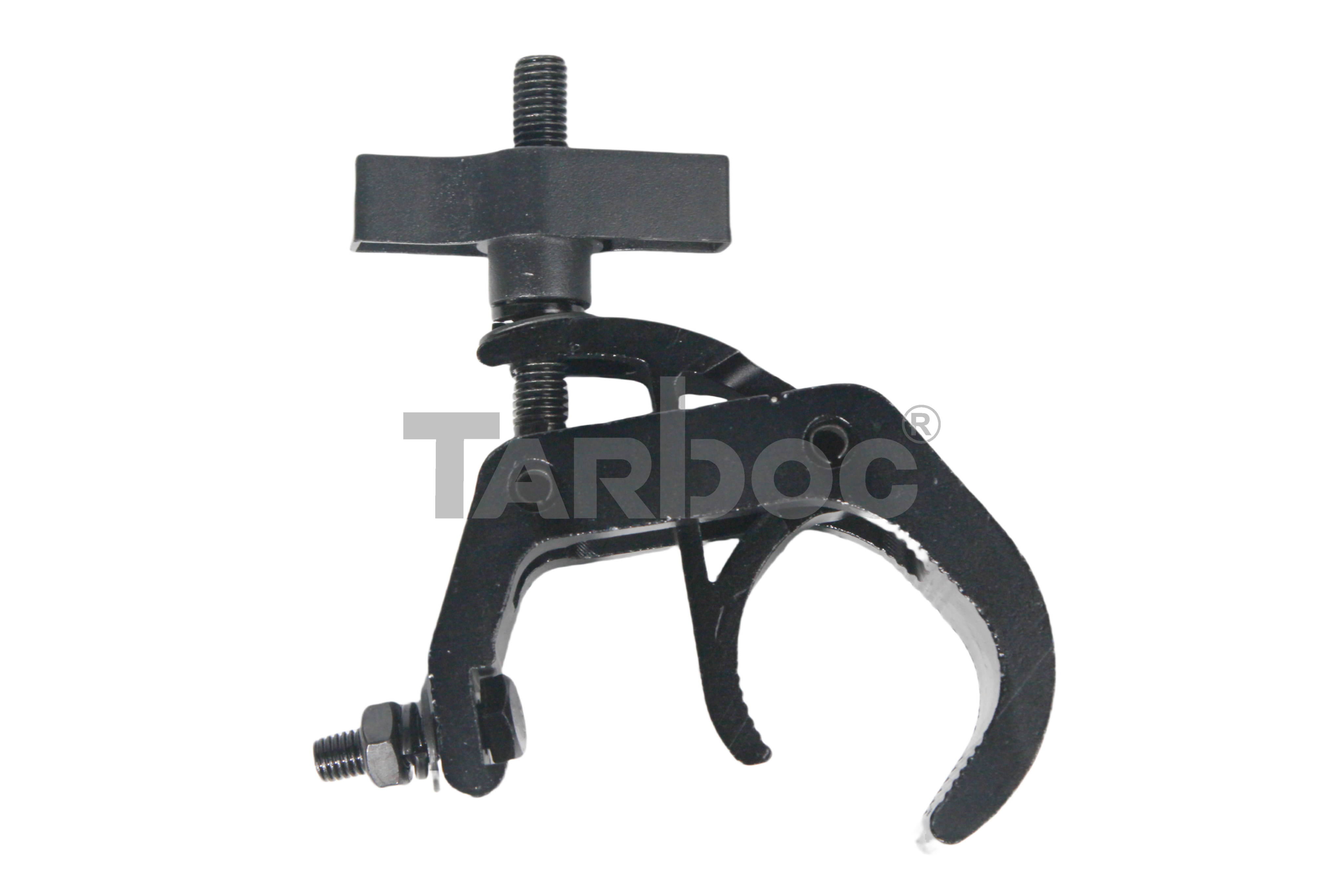 TARBOC RH‑T06 (MM‑1‑3239) — струбцина для надёжного крепления светового сценического оборудования на трубах и фермах. Изготовлена из утолщённой стали, окрашена в чёрный цвет. При малом весе (0,3 кг) отличается высокой грузоподъёмностью — выдерживает нагрузку до 250 кг. Конструкция обеспечивает простой и быстрый монтаж, устойчива к эксплуатационным нагрузкам. Ширина зажима составляет 40–70 мм, что позволяет надёжно фиксировать приборы разного типоразмера. Подходит для профессионального использования на концертах, в театрах и на других мероприятиях с подвесным световым оборудованием.