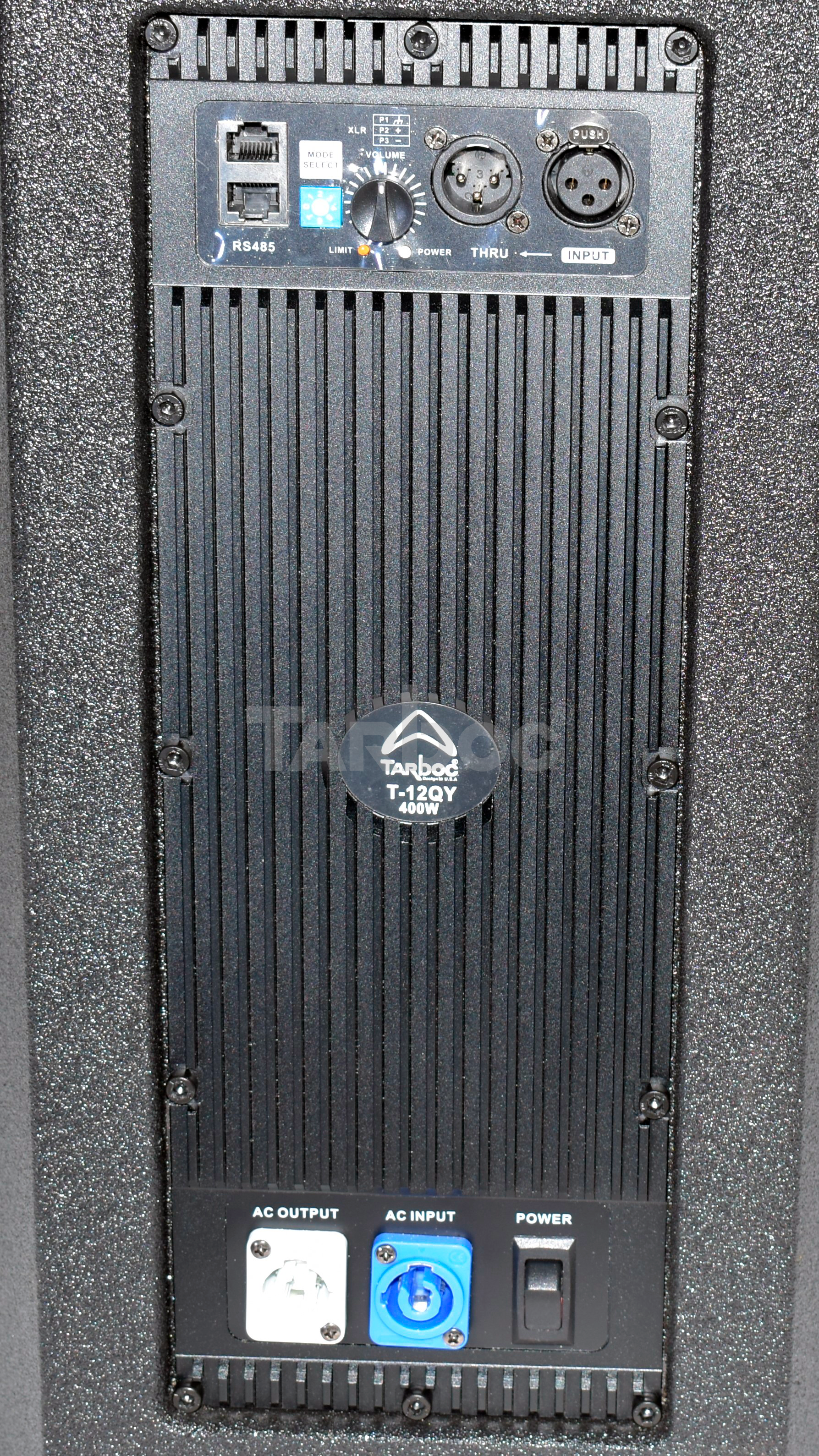 TARBOC T‑12QY (MM‑1‑3428) — активная акустическая система с 12‑дюймовым полнодиапазонным динамиком на неодимовом магните. Оснащена усилителем класса CLASS D с DSP, выдаёт мощность RMS 350 Вт и пиковую 700 Вт, выходная мощность усилителя — 400 Вт. Частотный диапазон — от 50 Гц до 20 кГц, импеданс — 8 Ω, чувствительность — 96 дБ (1 М/1 Вт). Корпус из берёзовой фанеры с металлической решёткой, чёрный цвет, габариты — 620×400×380 мм. Питание — от сети 220–240 В, 50–60 Гц. Подходит для сценических выступлений, клубов и концертных площадок, обеспечивает чёткое и мощное звучание.