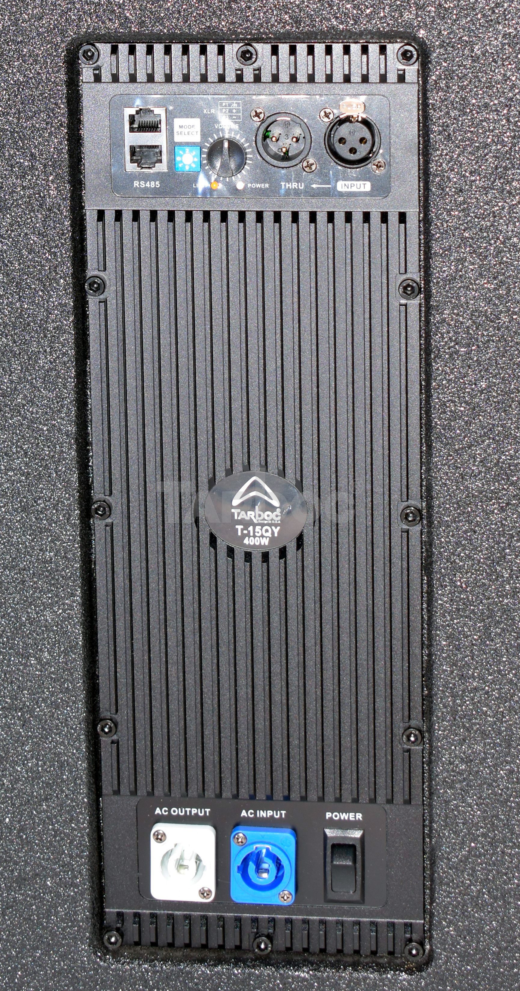 TARBOC T‑15QY (MM‑1‑3429) — активная акустическая система с 15‑дюймовым полнодиапазонным динамиком на неодимовом магните. Мощность RMS — 400 Вт, пиковая — 800 Вт, частотный диапазон — 40 Гц–20 кГц. Оснащена усилителем класса CLASS D с DSP (выходная мощность 1×400 Вт), импеданс — 8 Ω, чувствительность — 98 дБ. Корпус из берёзовой фанеры с металлической решёткой, чёрный цвет. Размеры — 700×450×430 мм, питание — 220–240 В (50–60 Гц). Подходит для сценических выступлений и концертных площадок.