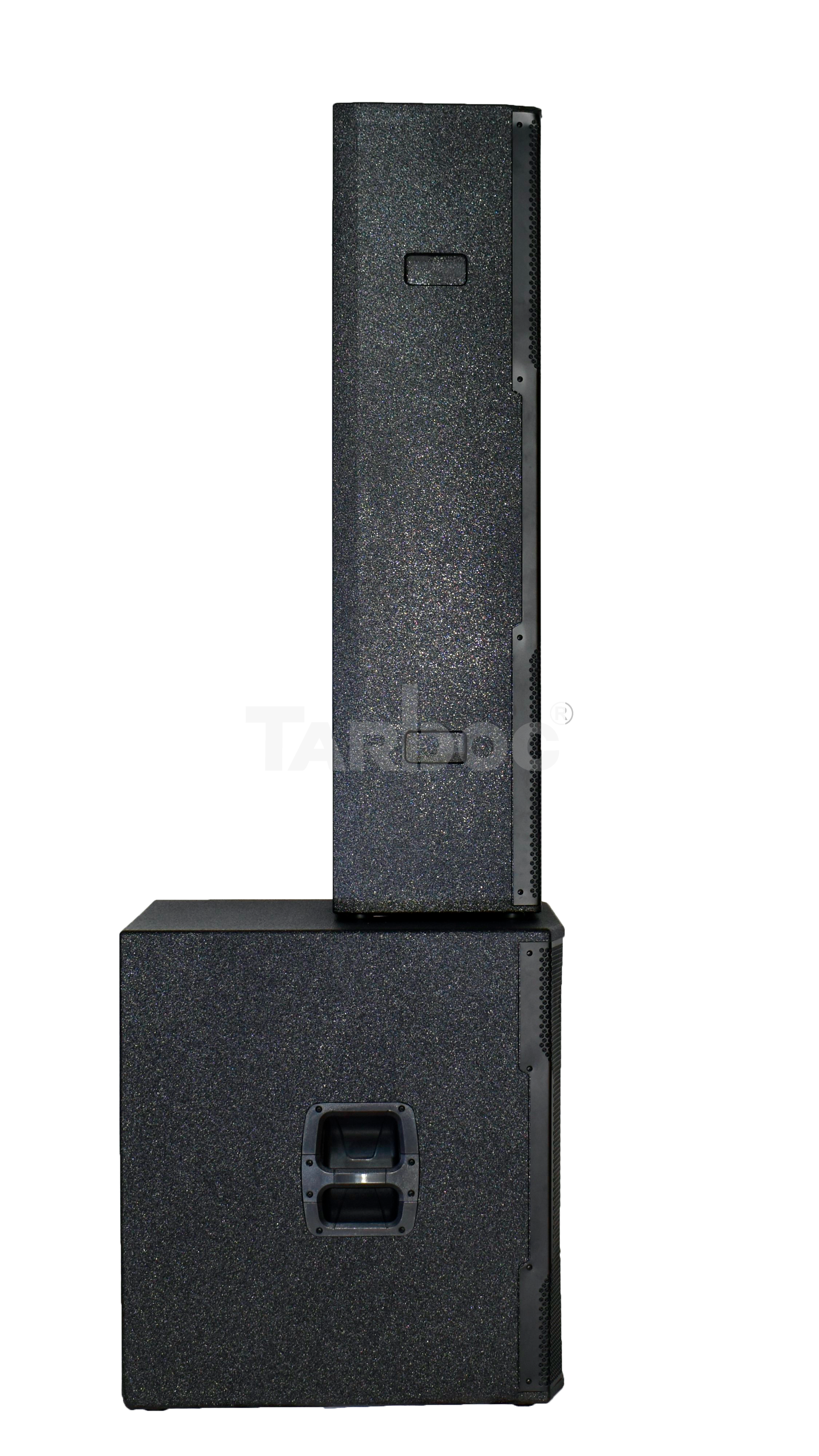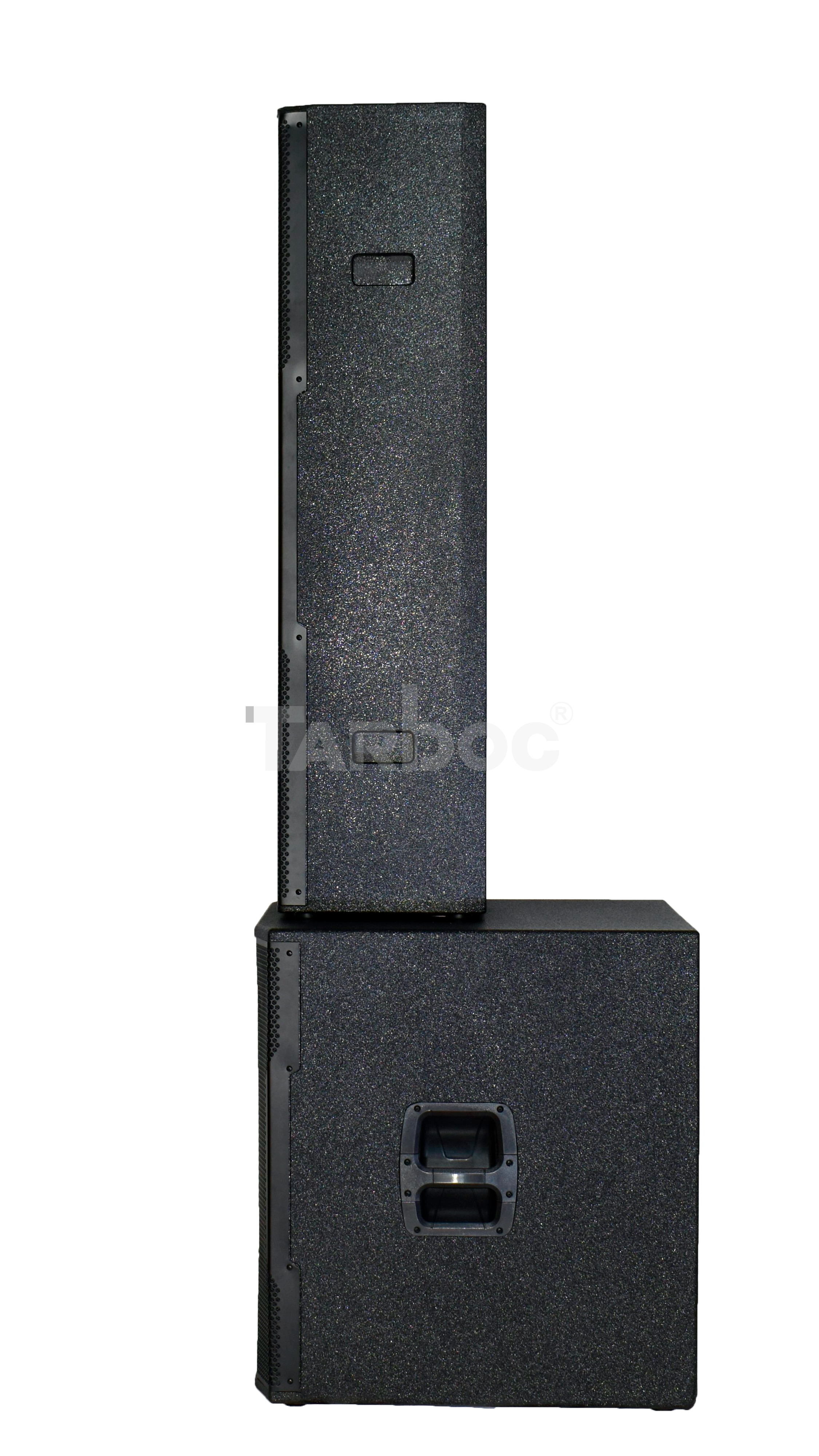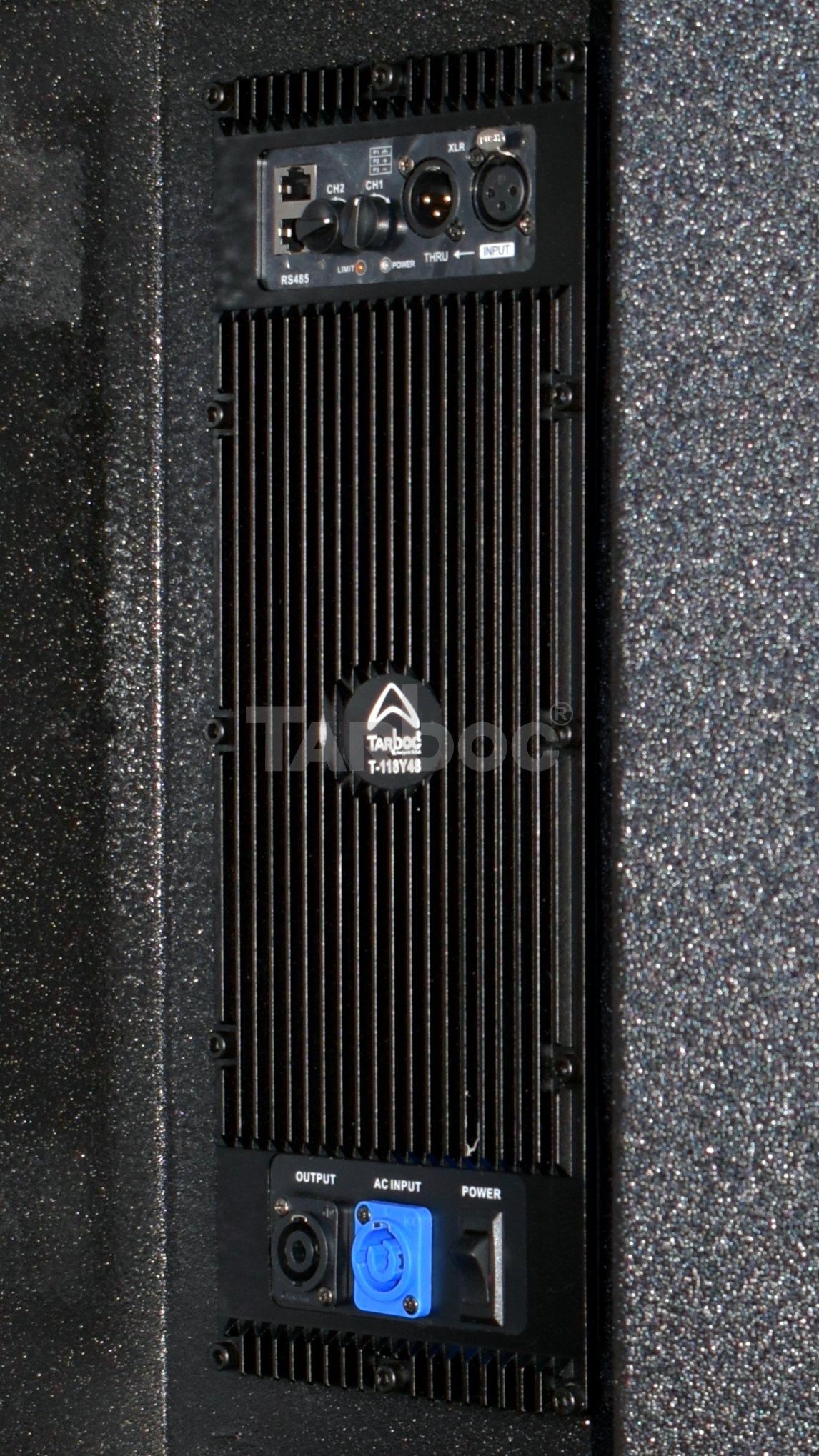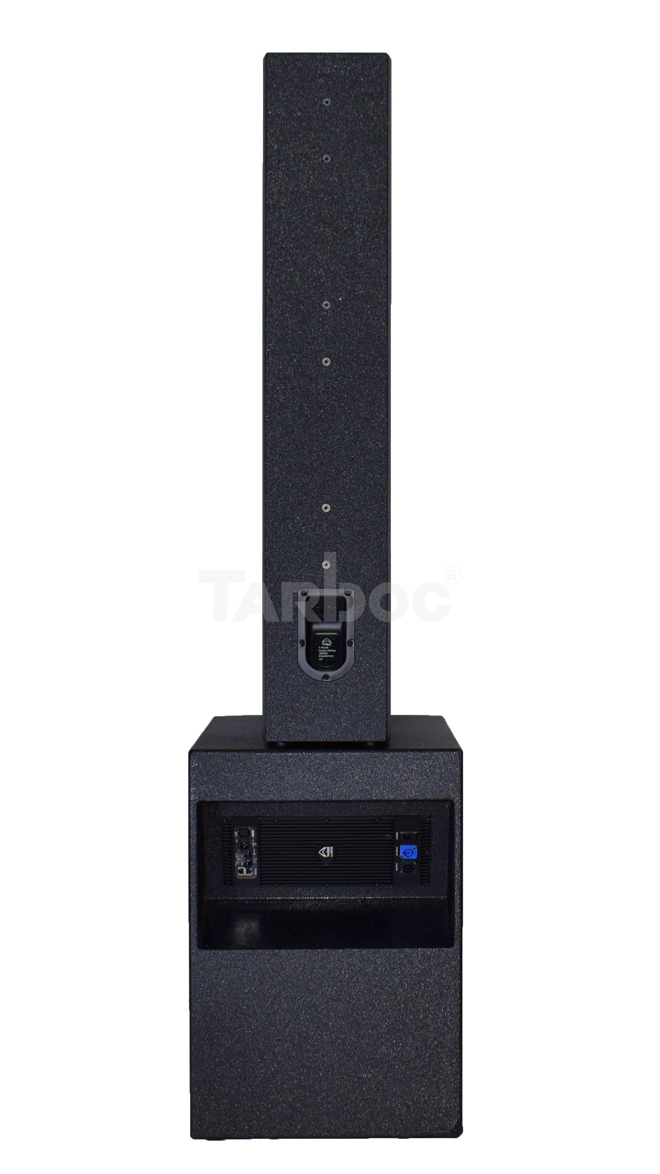 TARBOC T‑RC48+T‑118Y48 (MM‑1‑3435) — комплект из пассивной акустической системы T‑RC48 и активного сабвуфера T‑118Y48 для концертных площадок, клубов и театров. Суммарная мощность RMS — 1800 Вт: акустическая система выдаёт 800 Вт (пиковая 1600 Вт, частотный диапазон 90 Гц–20 кГц), сабвуфер — 1000 Вт (пиковая 2000 Вт, диапазон 40 Гц–500 Гц). Обе компоненты имеют импеданс 8 Ω, чувствительность 99 дБ и 104 дБ соответственно. Корпус из берёзовой фанеры с металлической решёткой, чёрный цвет. Подключение через SpeakonNL4, питание 220–240 В (50–60 Гц). Размеры: система — 710×650×490 мм, сабвуфер — 1240×320×240 мм. Для акустической системы требуется внешний усилитель мощности.