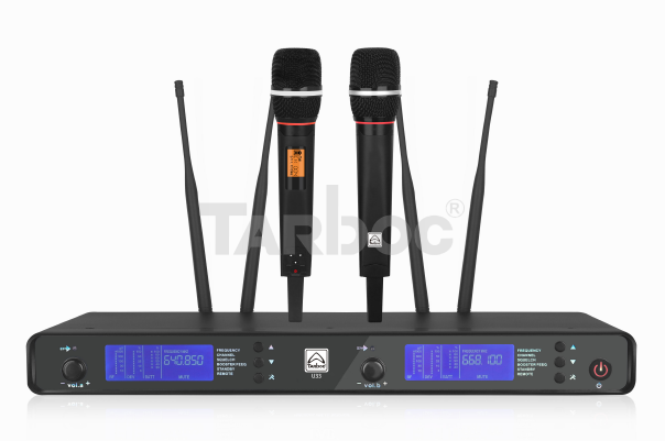 TARBOC U‑33 (MM‑1‑3379) — комплект из двух беспроводных ручных микрофонов, разработанный для профессионального и полупрофессионального применения: вокальных выступлений, презентаций, мероприятий в залах и на открытых площадках. Система сочетает простоту эксплуатации с надёжным радиоканалом и качественным звуковоспроизведением.