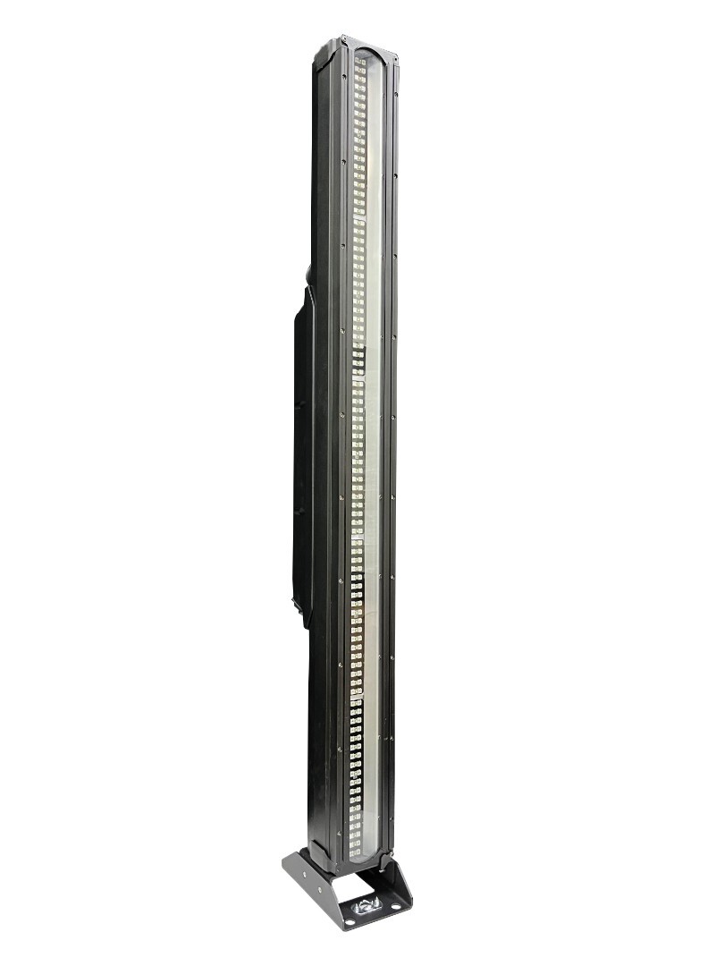 Источник света 90 белых светодиодов (7000К) по 3 Вт каждый и дополнительные 180шт по 0.5W RGB . Угол раскрытия 90°. Управление Dmx512: 13/20 каналов (независимое управление 20 сегментами), встроенные программы.Конвекционное охлаждение. Влагозащищенный корпус и разъёмы ip65.Потребление 400 Вт. Габариты 1004 x 95 x 130 мм. Вес 10кг. Опционально: рассеивающий фильтр, крепление для вертикального подвеса, кашетирующие шторки.