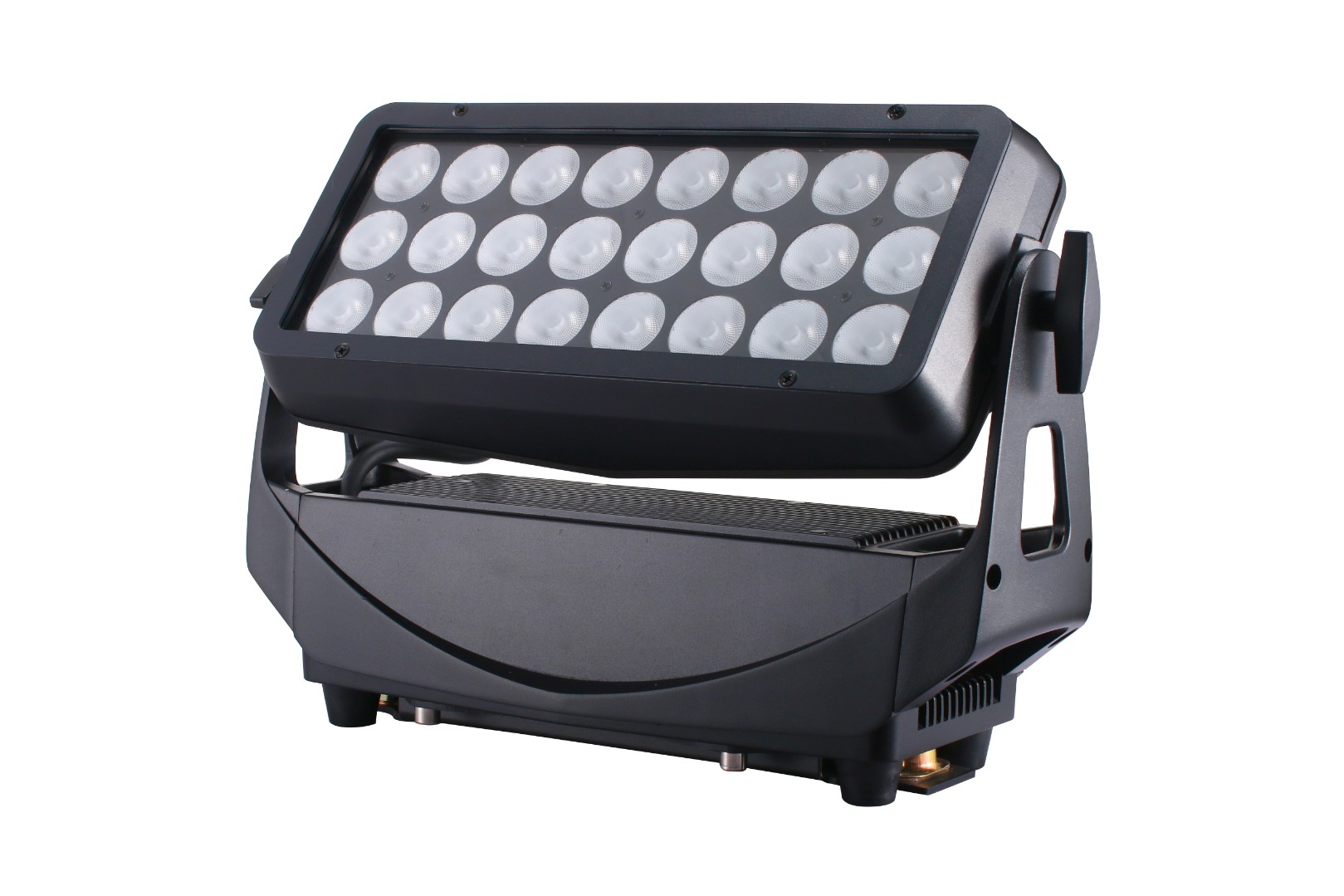 Полноцветная LED панель для архитектурных и сценических применений. 24 светодиода RGBALC (6 в 1, Красный, Зелёный, Синий, Янтарный, Лайм, Циан\Голубой ) по 20 Вт каждый. Функция Flicker free. Угол раскрытия луча 25° (35°/45° опционально).Рручной поворот прожектора по TILT на 170°. Стробирование до 25 Гц. Дополнительные аксессуары (рассеивающий фильтр и кашетирующие шторки). Управление DMX512 10/14/17/21 каналов, RDM, Master-slave, Auto, Wi-DMX (опционально). Цветной 1.77" TFT LCD дисплей. Степень защиты корпуса и разъемов ( Powercone True и DMX - Seetronic) Ip65. Охлаждение принудительное с регулировкой оборотов вентилятора. Потребляемая мощность 600 Вт. Вес 6,6 кг. Габариты 420 х 140 х 265 мм.